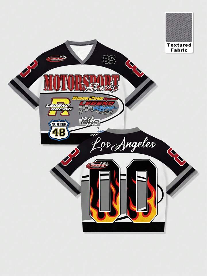Prep T-shirt à col V casual pour homme, avec imprimé lettre, manches courtes, pour l'été