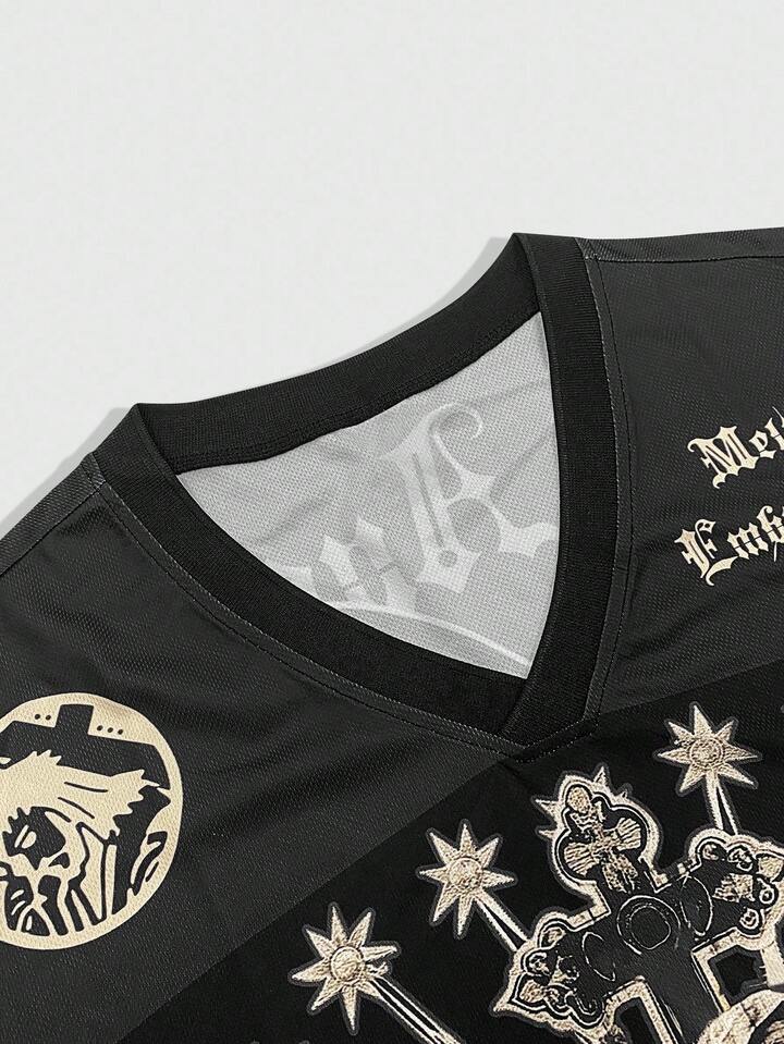 Prep T-shirt décontracté à manches courtes col V avec imprimé ange, polyvalent, pour homme, été