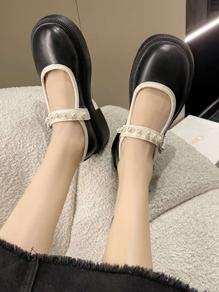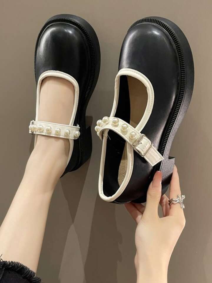 Preppy Babies Pour Femme , Bicolore À Fausse Perle Plate-Forme Chaussure Compensée Chaussures