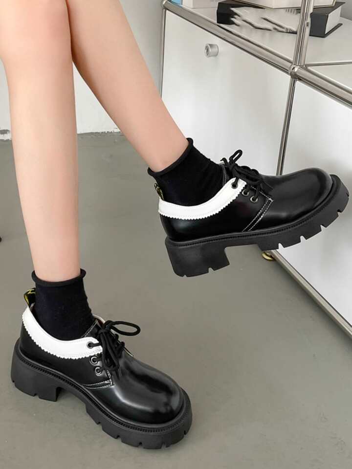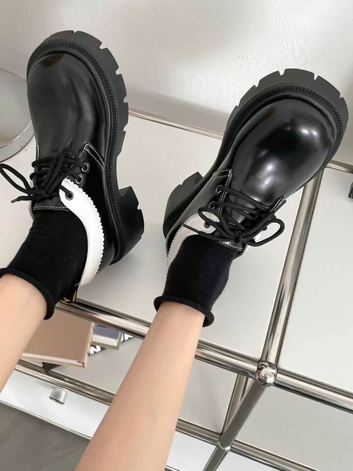 Preppy Chaussures Oxford Femme Bicolore À Lacets Chaussure Compensée Chaussures