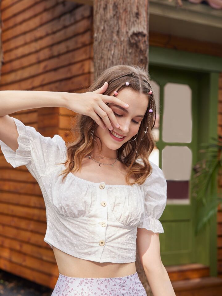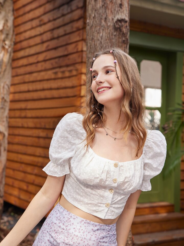 Blouse courte manches bouffantes à bouton