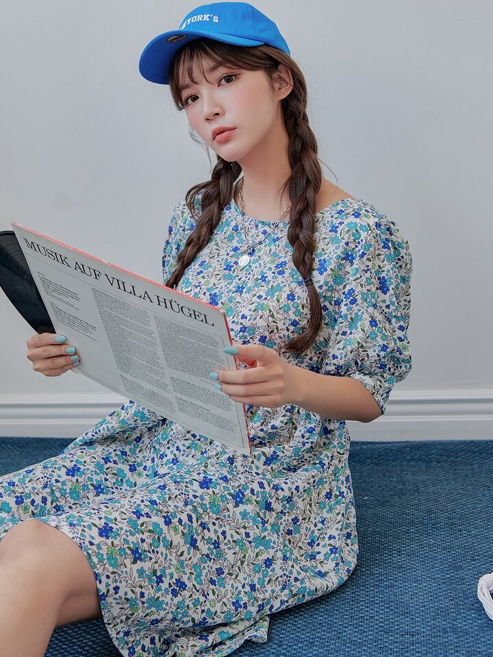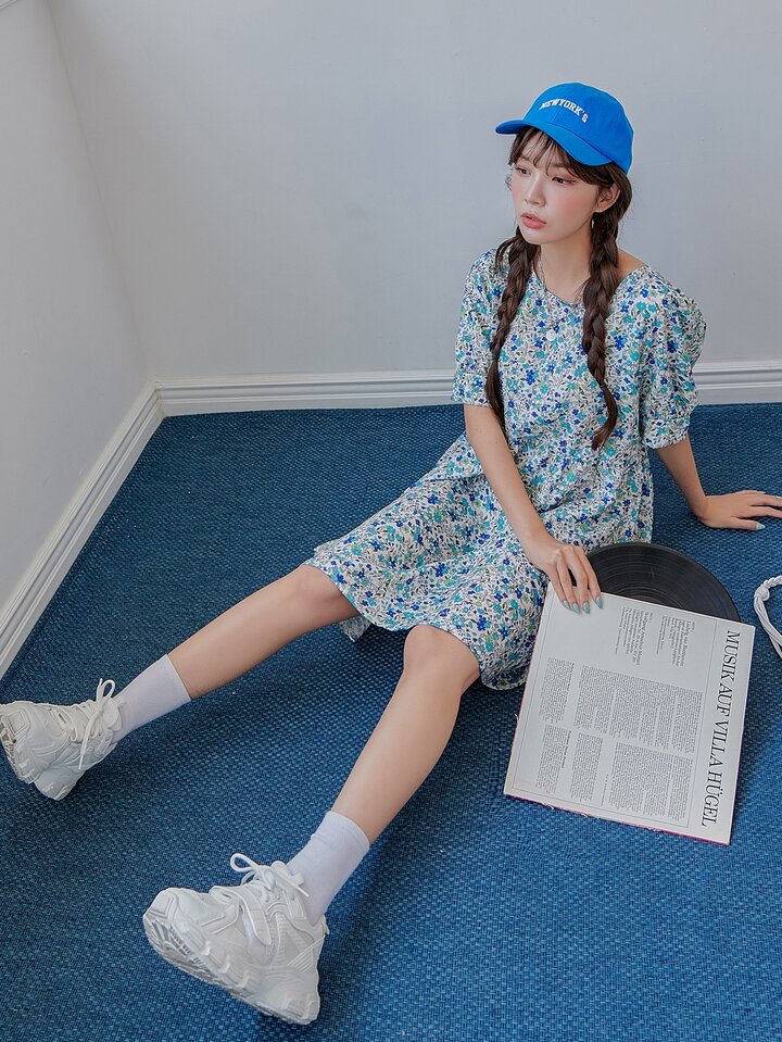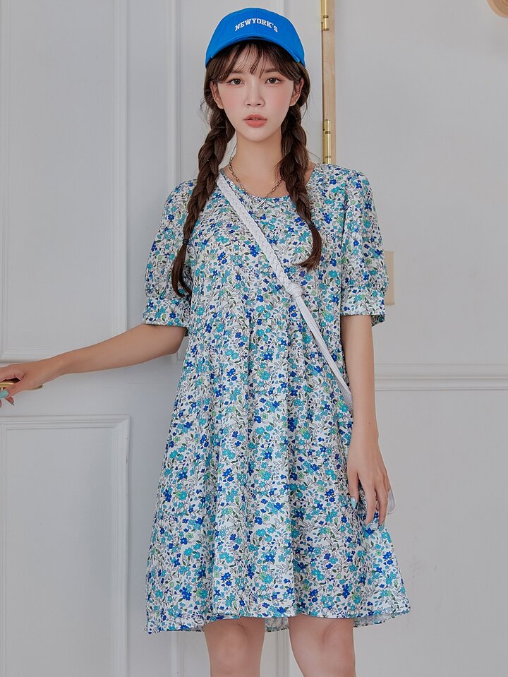 Robe manches bouffantes fleuri