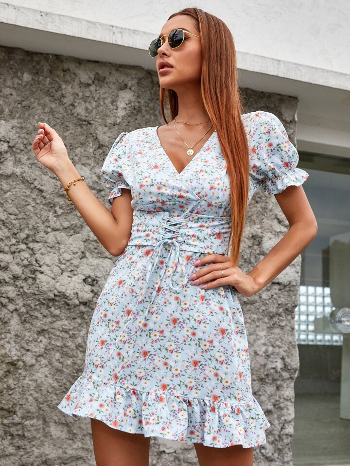 Robe croisée fleurie avec corset