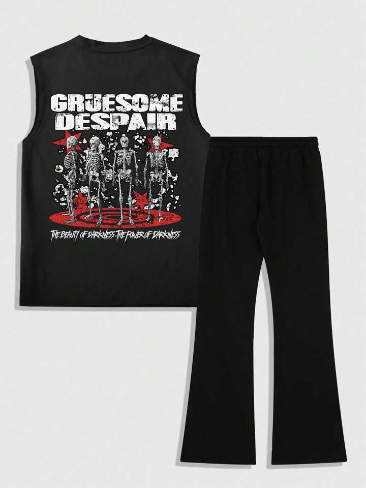 ROMWE Avant 2 pièces Ensemble de débardeur et short imprimé pour homme, convient pour le printemps et l'été