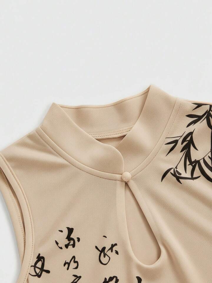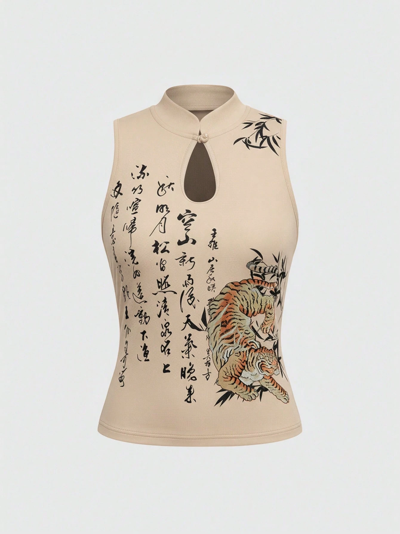 ROMWE Avant Débardeur pour femme avec imprimé calligraphique de tigre et de feuilles de bambou de style chinois