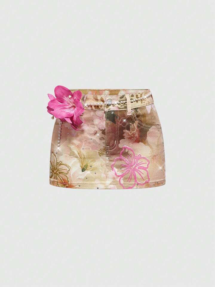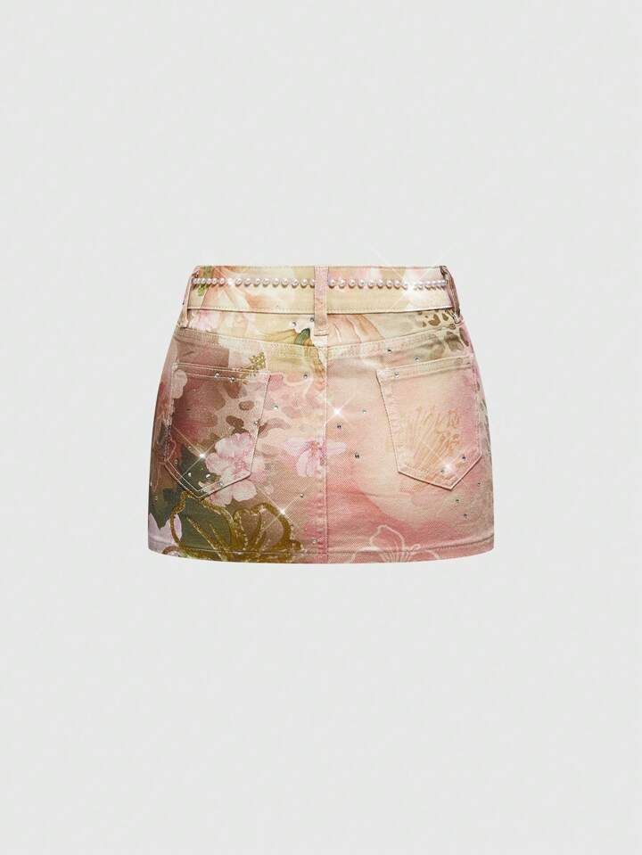 ROMWE Avant Jupe en jean mini taille basse découvrant le ventre style Coconut Girl Y2K, plage d'été