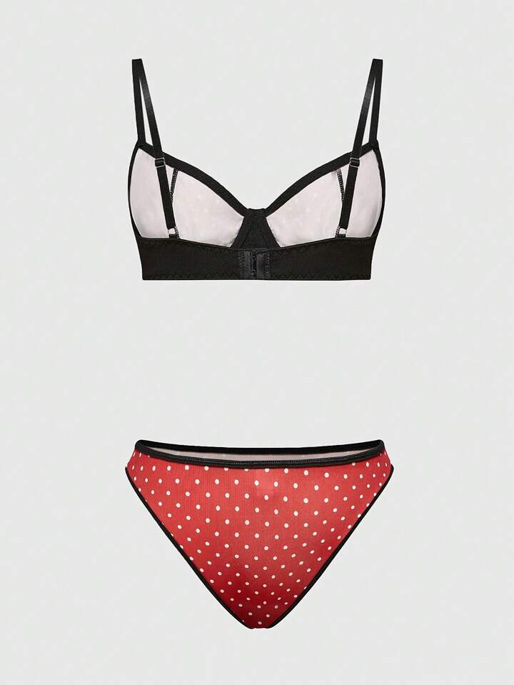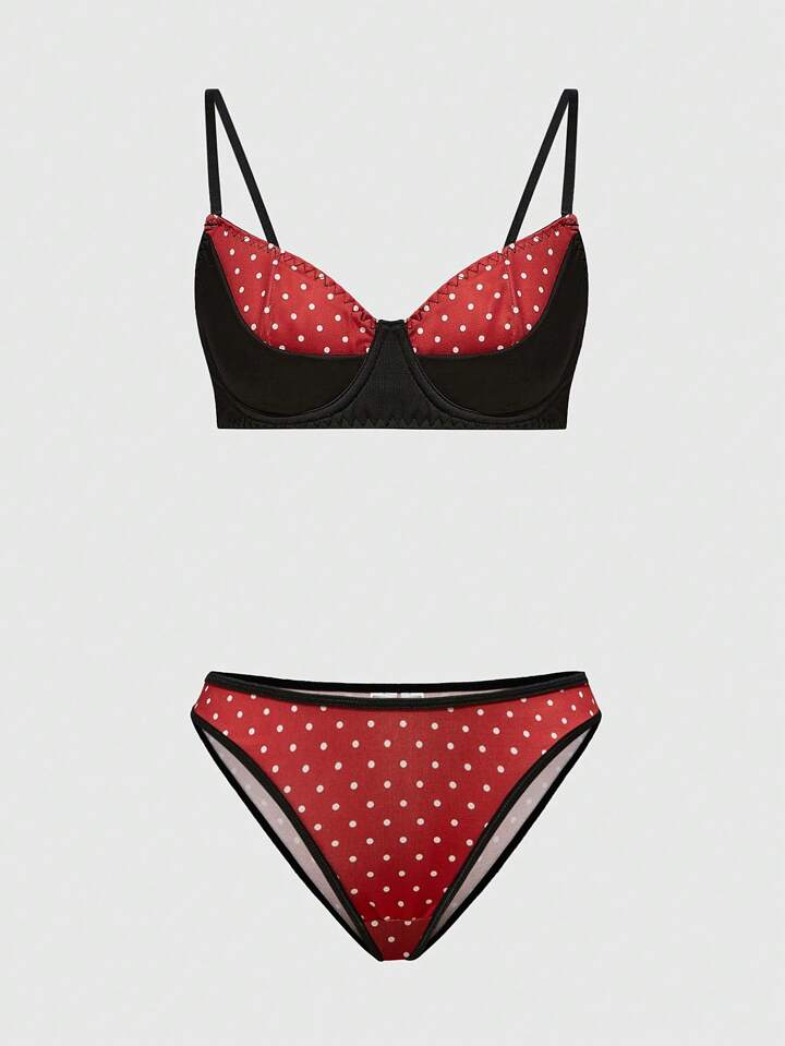 ROMWE Avant Ensemble de soutien-gorge matelassé et culotte à pois style France Sicile