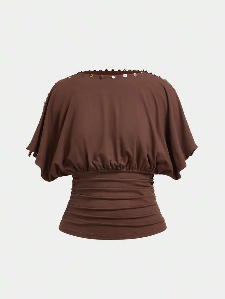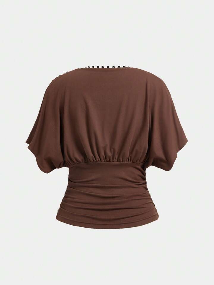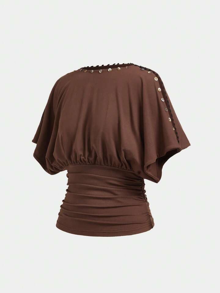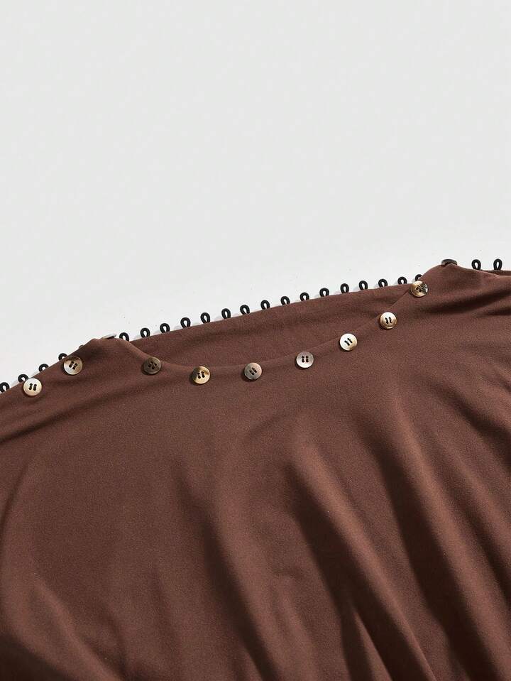 ROMWE Avant Top court fait main avec boutons à la taille pour femmes