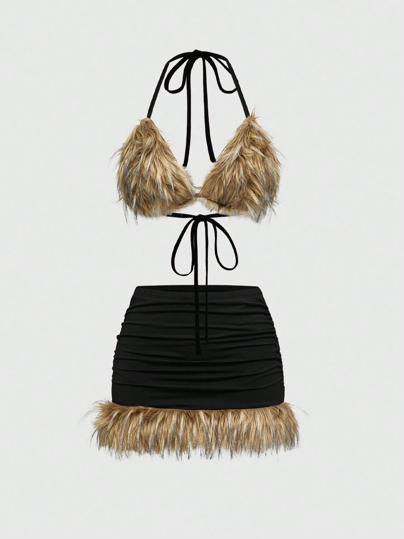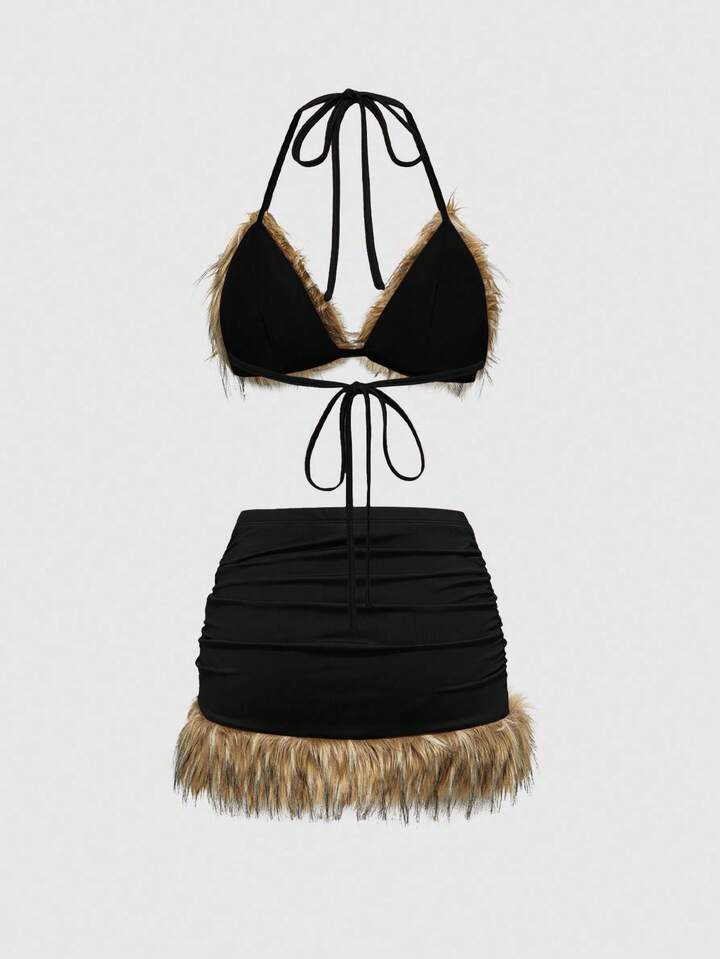 ROMWE Avant Ensemble 2 pièces femme taille basse avec Top triangle moelleux et style hippie chic