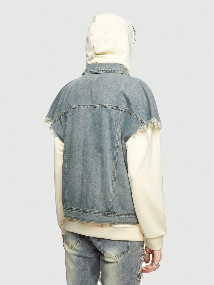 ROMWE Avant Veste En Jean Pour Homme Avec Bord Effiloché Et Fausses Poches