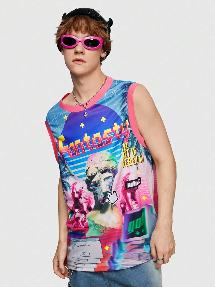ROMWE Avant Débardeur imprimé Statue & Lettre pour hommes, adapté pour un usage quotidien en printemps et été