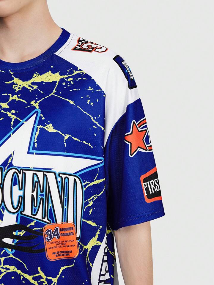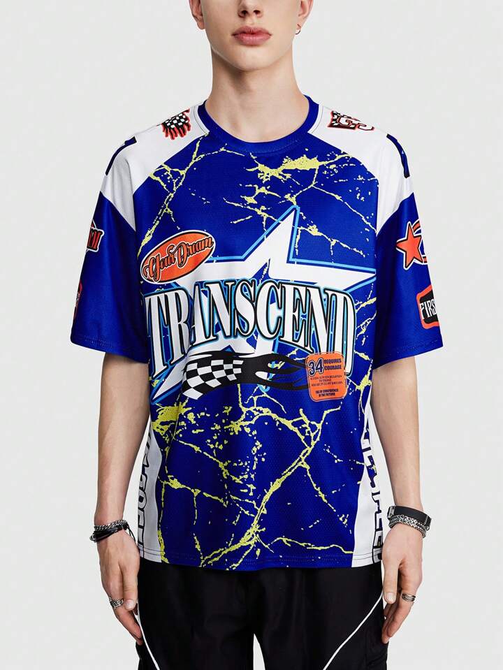 ROMWE Avant T-shirt pour homme à manches courtes avec design de pentagramme et impression de slogan. Convient pour un port quotidien au printemps et en été