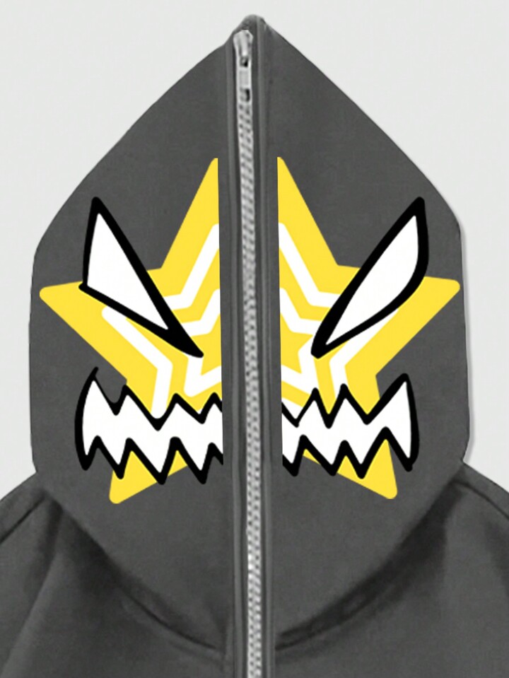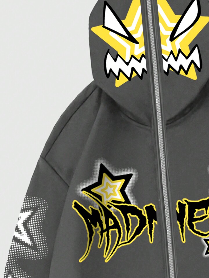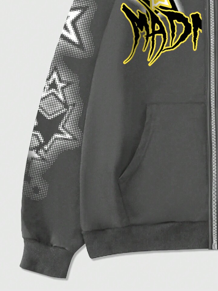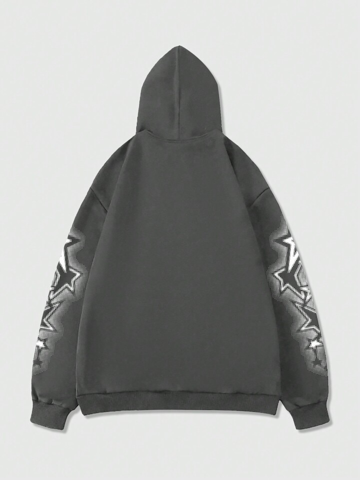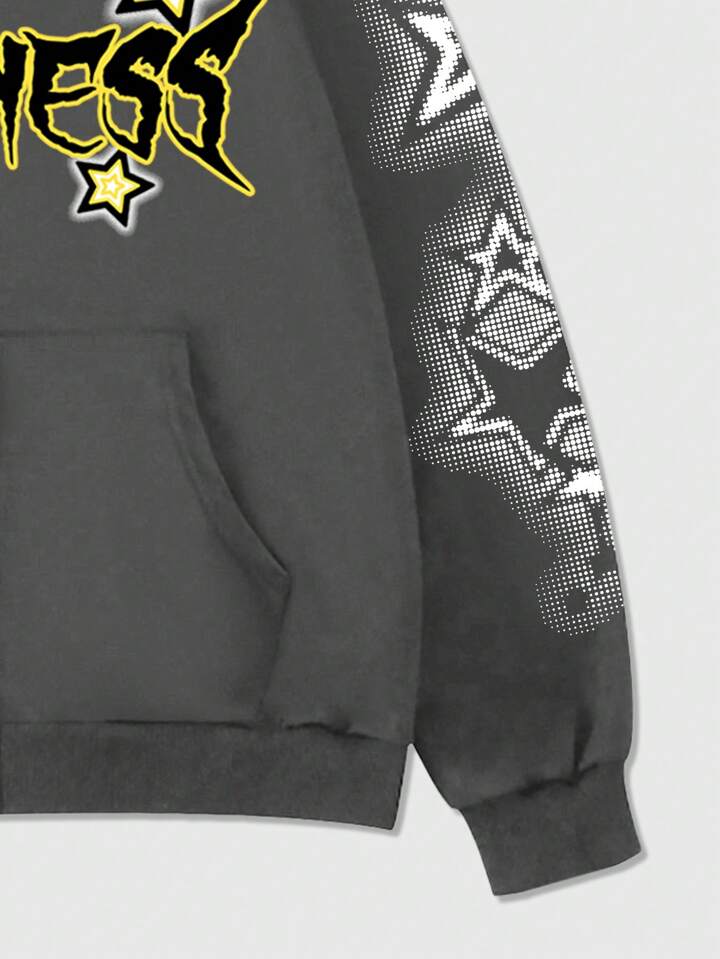 ROMWE Avant Sweat-shirt à capuche à manches longues avec poche kangourou, imprimé simple, pour hommes, école