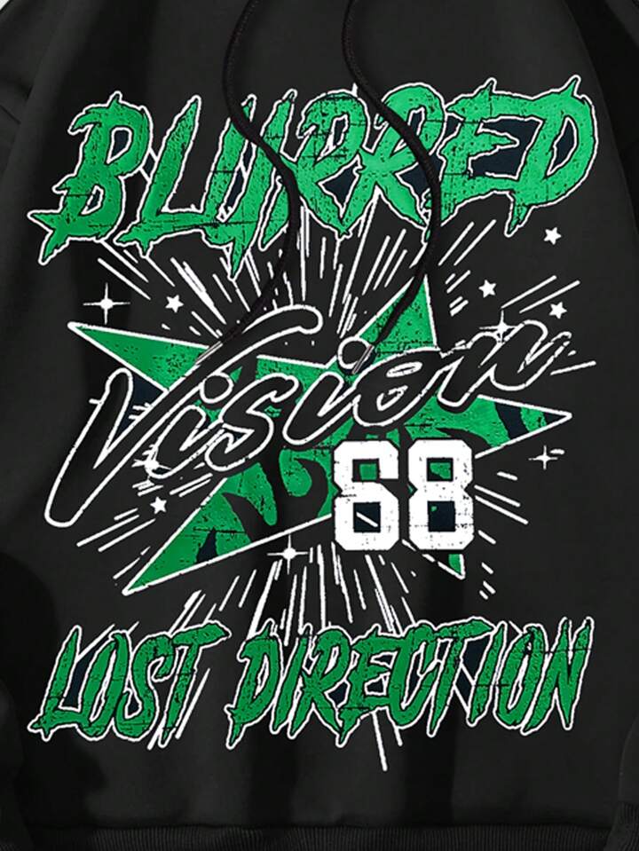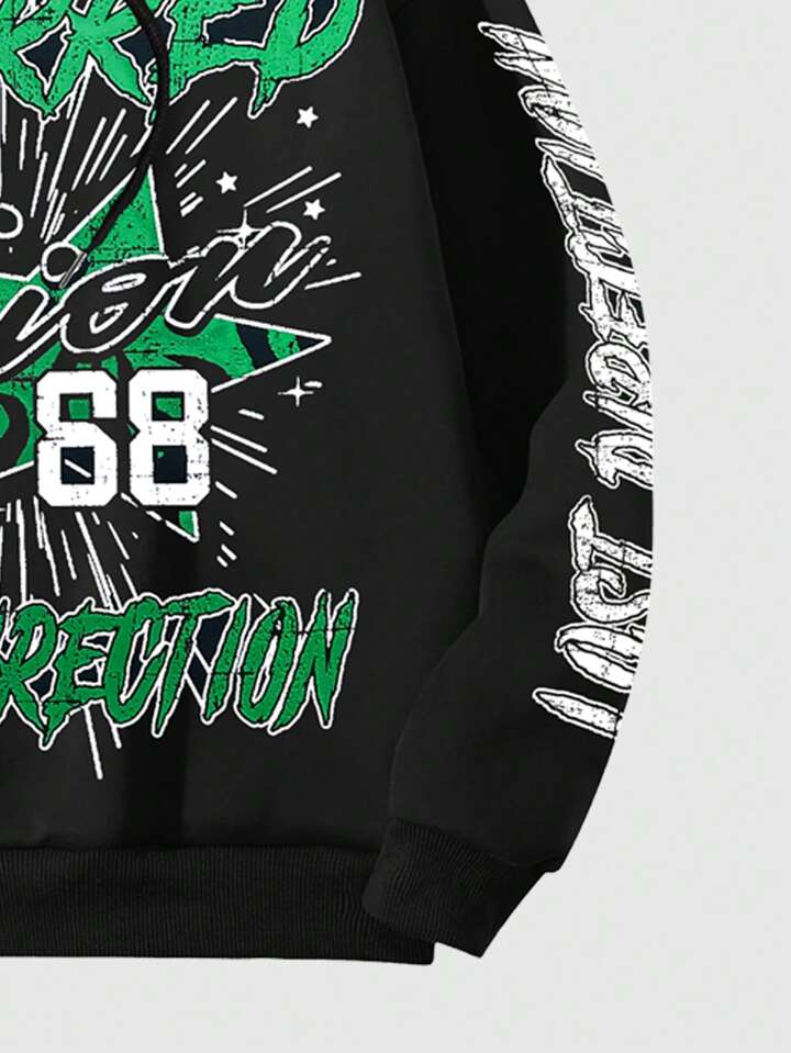 ROMWE Avant Sweat-shirt à capuche ample et casual avec imprimé lettres et pentagramme, cordon de serrage, pour hommes, automne/hiver