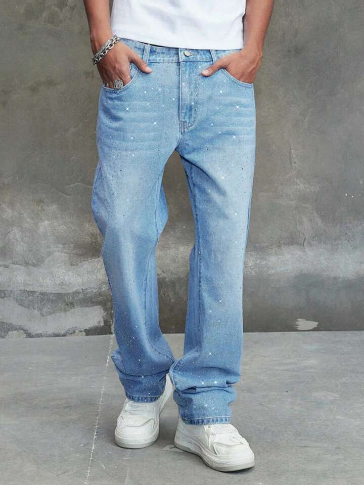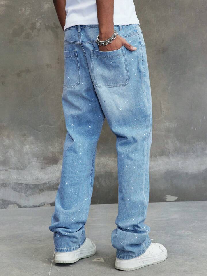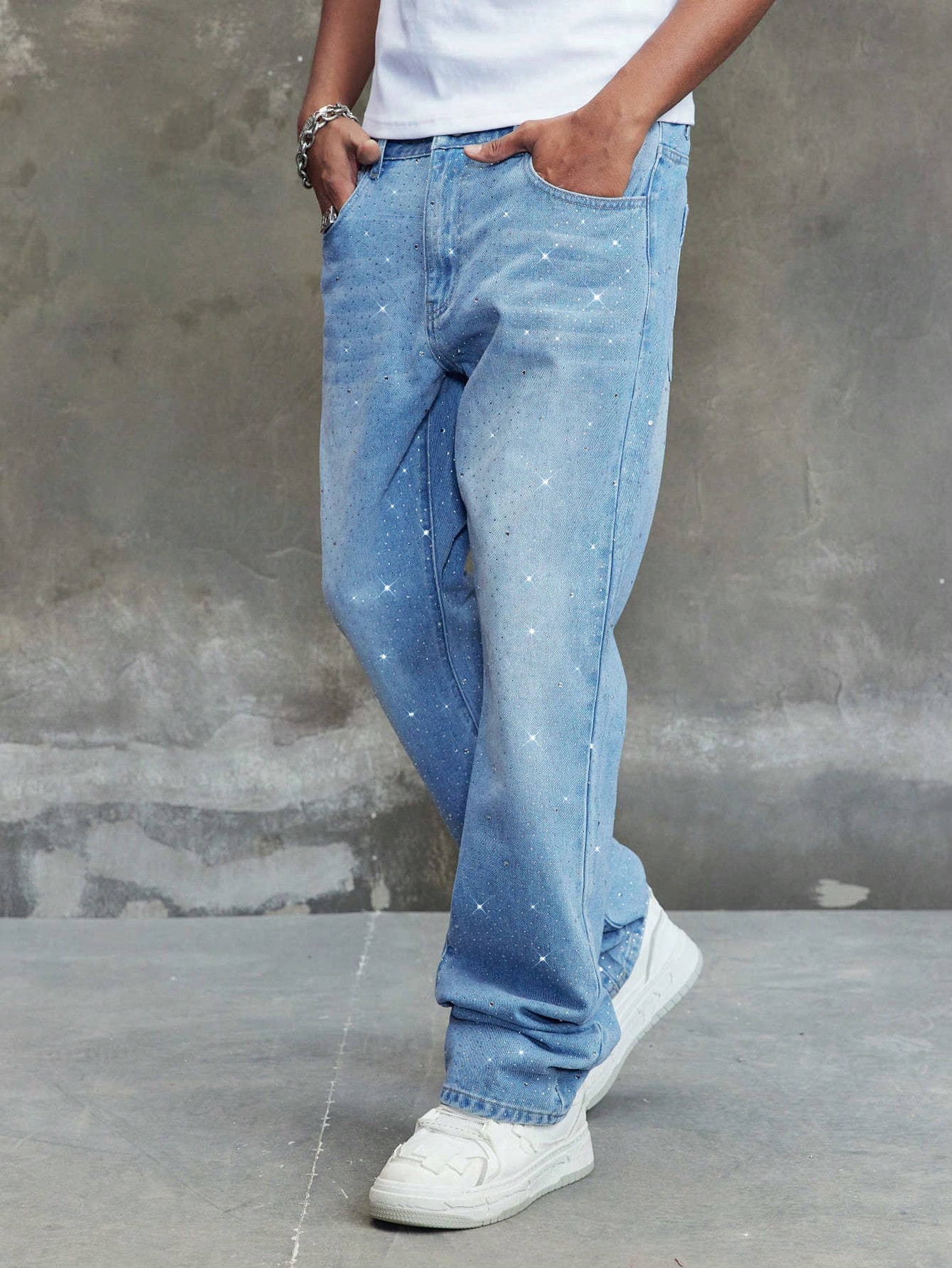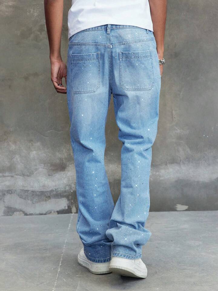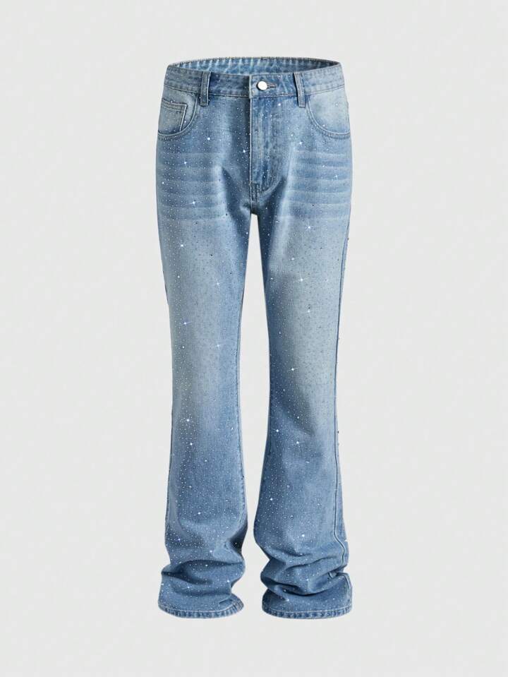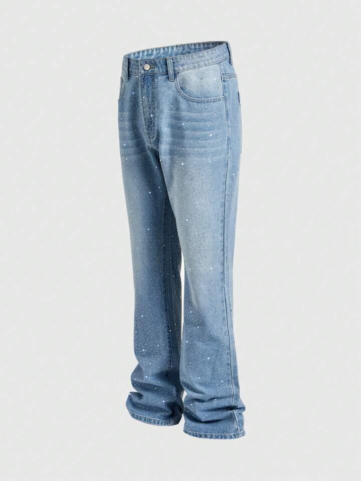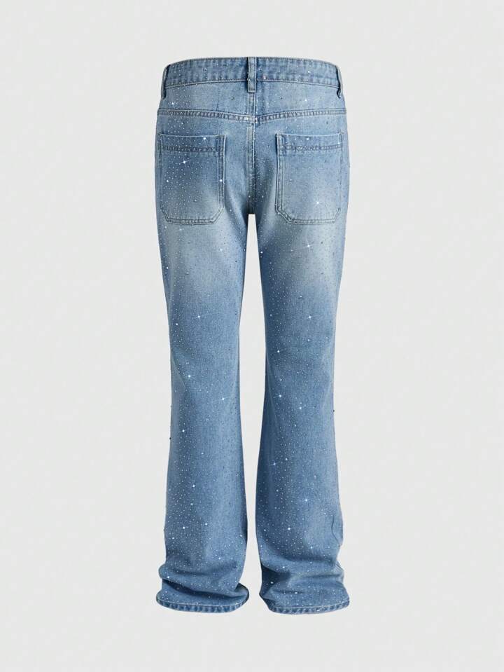 ROMWE Avant Jeans à jambe évasée pour hommes avec ornements de strass