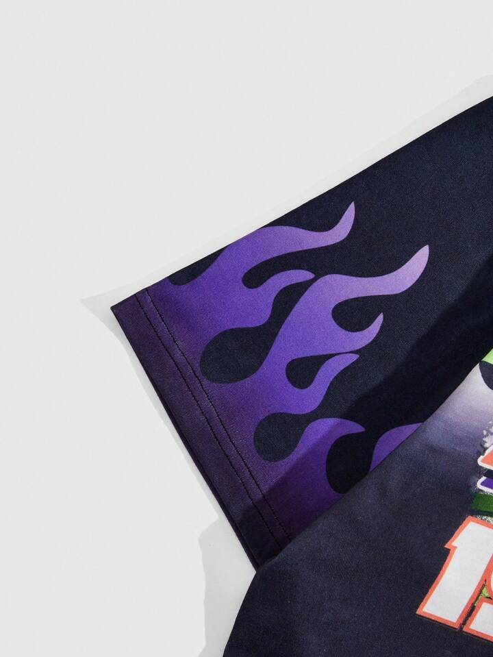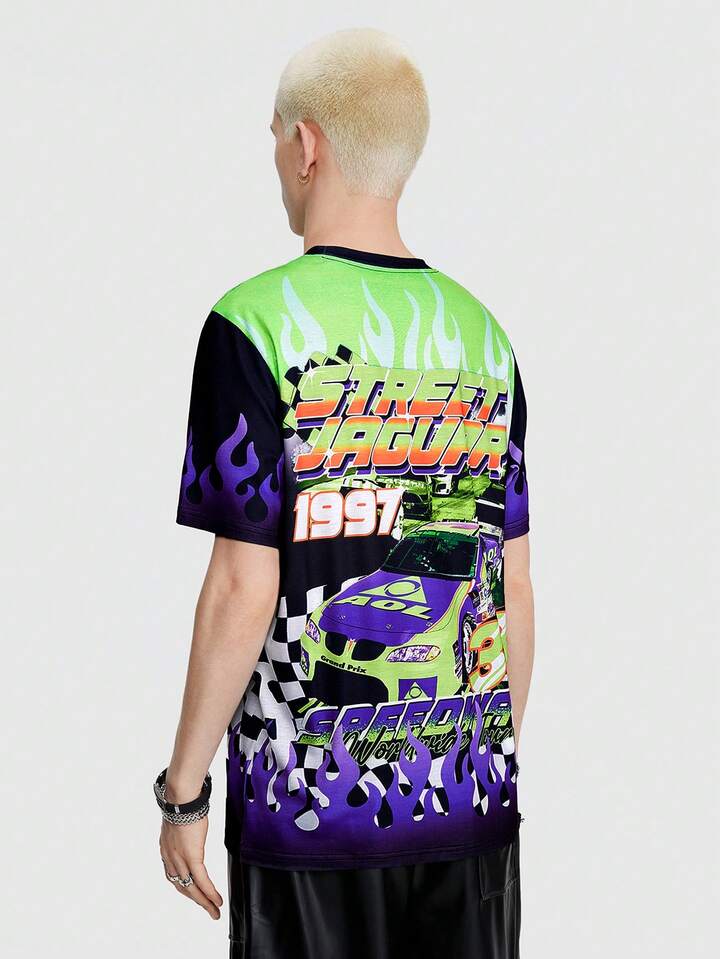 ROMWE Avant T-shirt Graphique De Lettre De Voiture Imprimé Flamme Et Damier Colorblock Pour Hommes