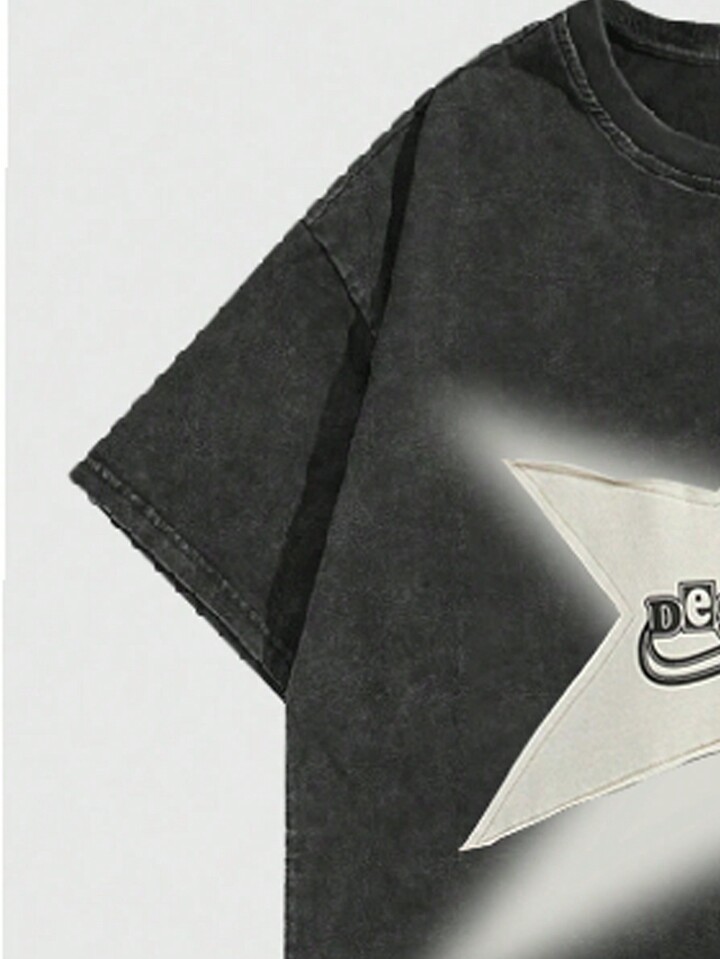 ROMWE Avant T-shirt à col rond et manches courtes pour homme avec appliqué en forme d'étoile et imprimé de lettres. Convient pour un usage quotidien et décontracté, école