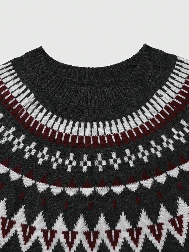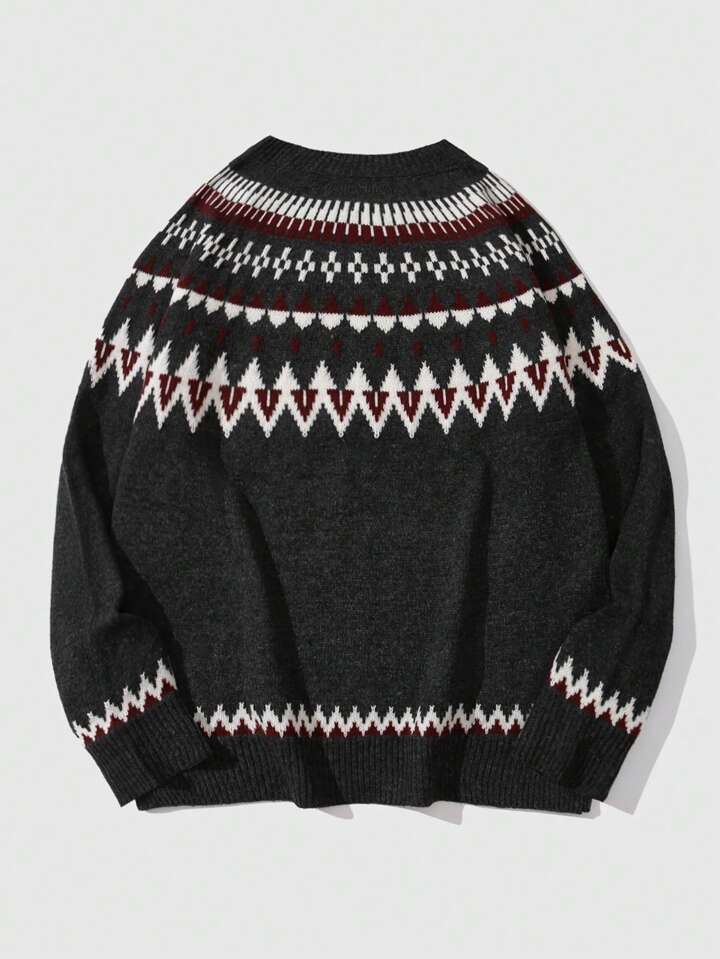 ROMWE Avant Pull en jacquard tricoté avec motif géométrique vintage pour hommes, automne/hiver
