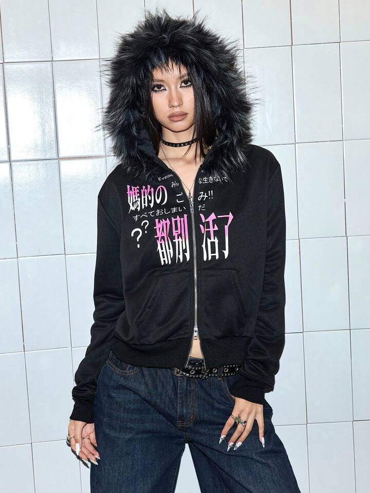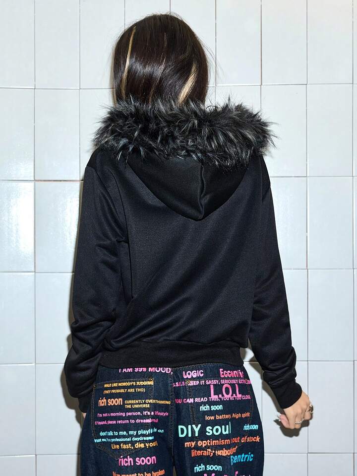ROMWE Avant Sweat-shirt à capuche ample doublé de polaire avec impression de slogan sarcastique