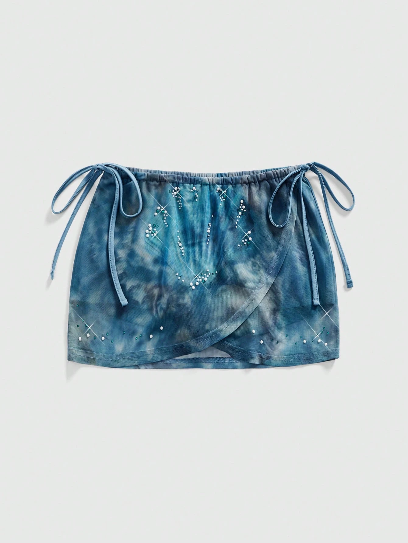ROMWE Avant Mini-jupe à taille ultra basse avec cordon de serrage, imprimé en maille pailletée