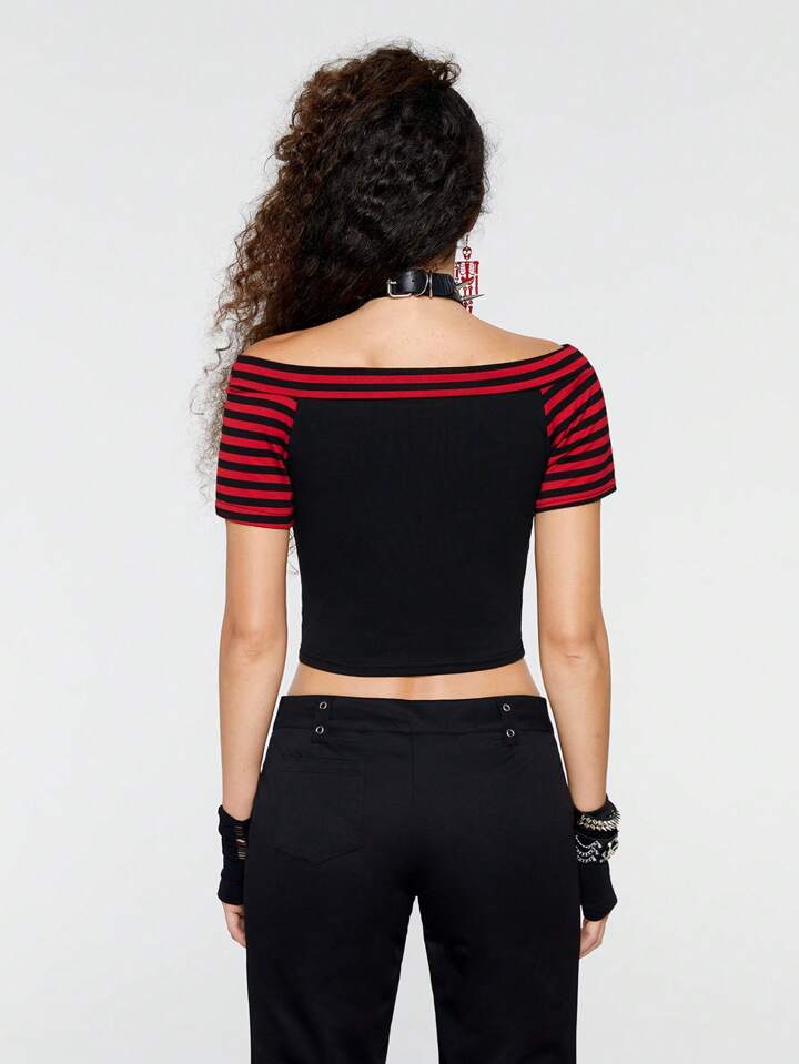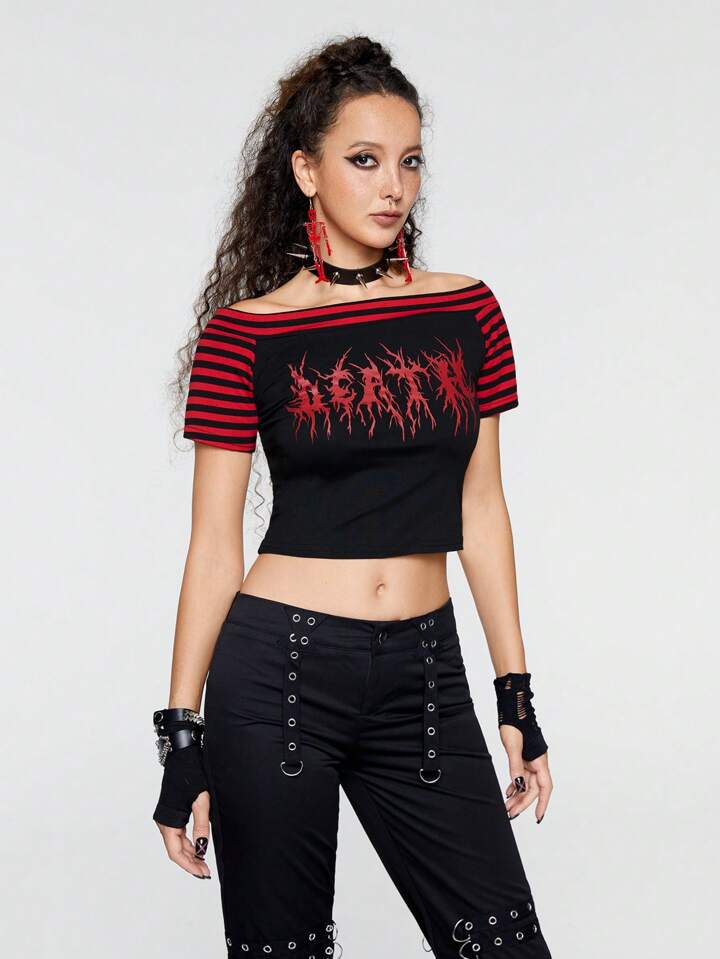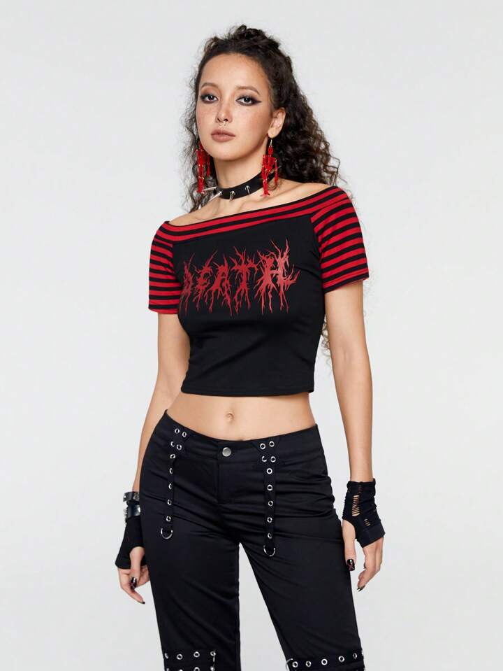 ROMWE Avant T-shirts pour femmes Casual Lettres Rayé