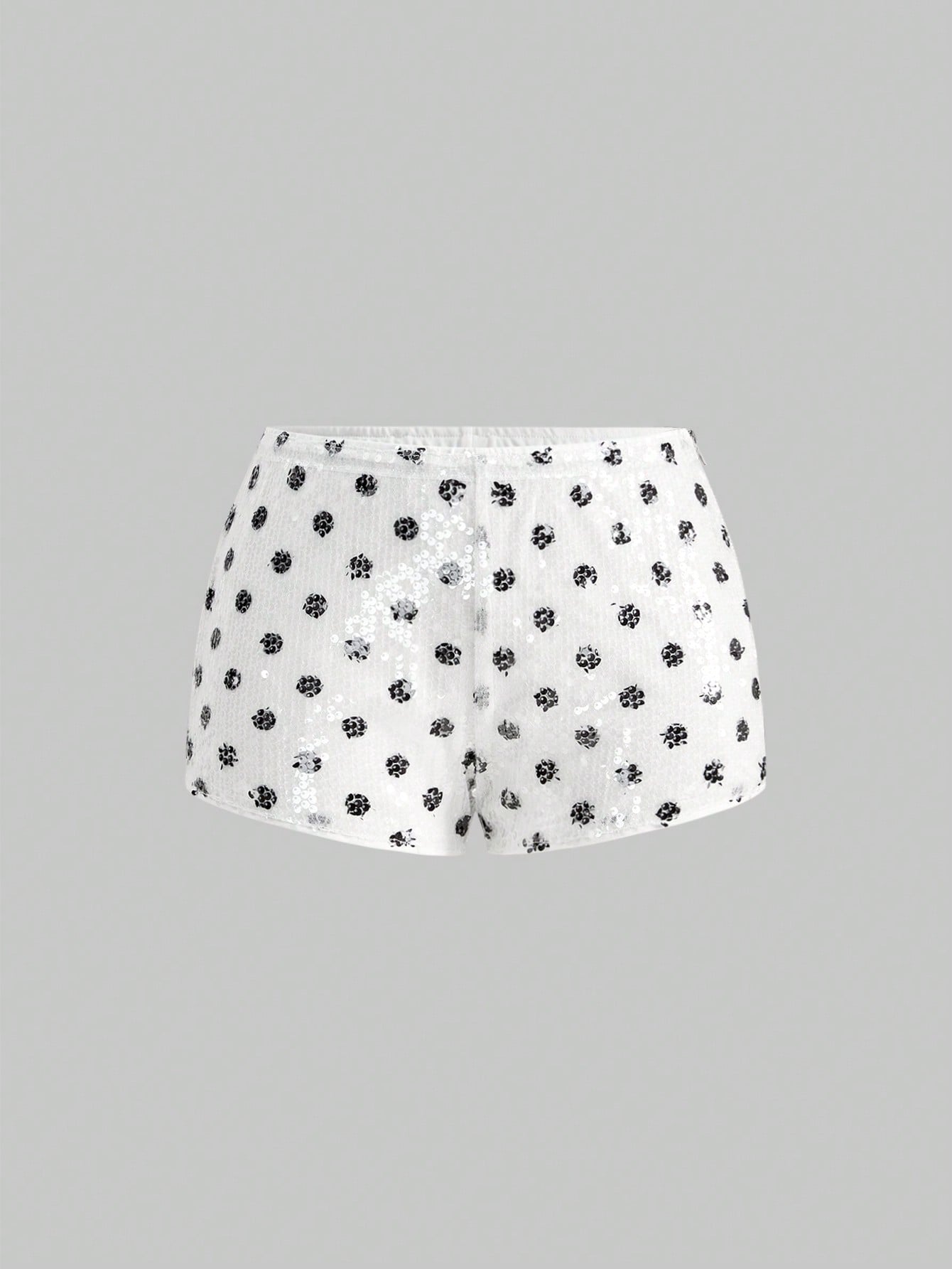 ROMWE Avant Short taille basse femme à pois pailletés vintage