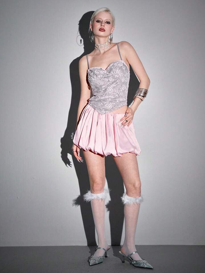 ROMWE Avant Débardeur asymétrique à ourlet en dentelle florale pour femme
