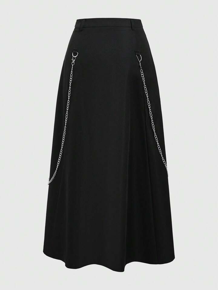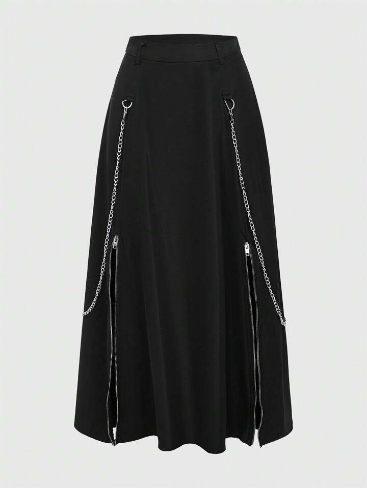 ROMWE Avant Jupe Pour Femme Avec Détails De Chaîne Et De Fermeture Éclair