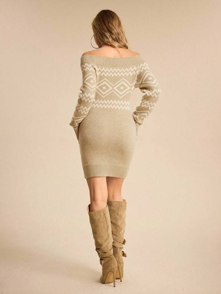 ROMWE Avant Robe pull ajustée à manches longues avec imprimé géométrique épaules dénudées pour femmes