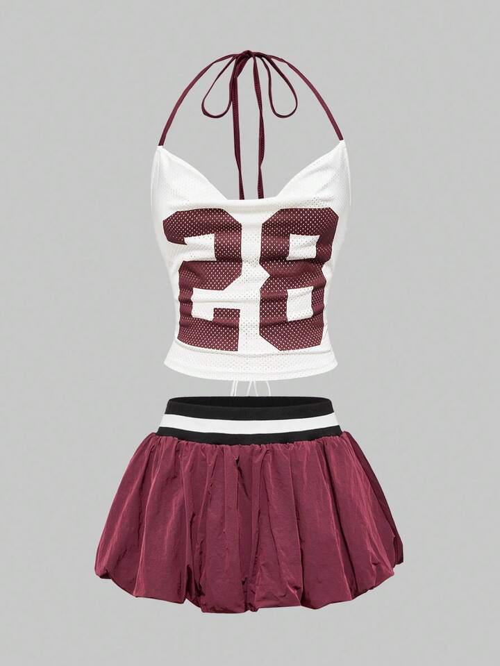 ROMWE Avant Débardeur à col drapé avec imprimé numérique et mini-jupe décontracté, ensemble 2 pièces pour femmes