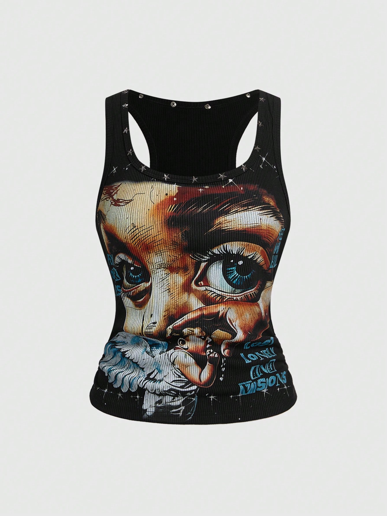 ROMWE Avant Débardeur unisexe streetwear rétro baddie avec imprimé d'yeux d'ange et d'étoiles à rivets pour femmes