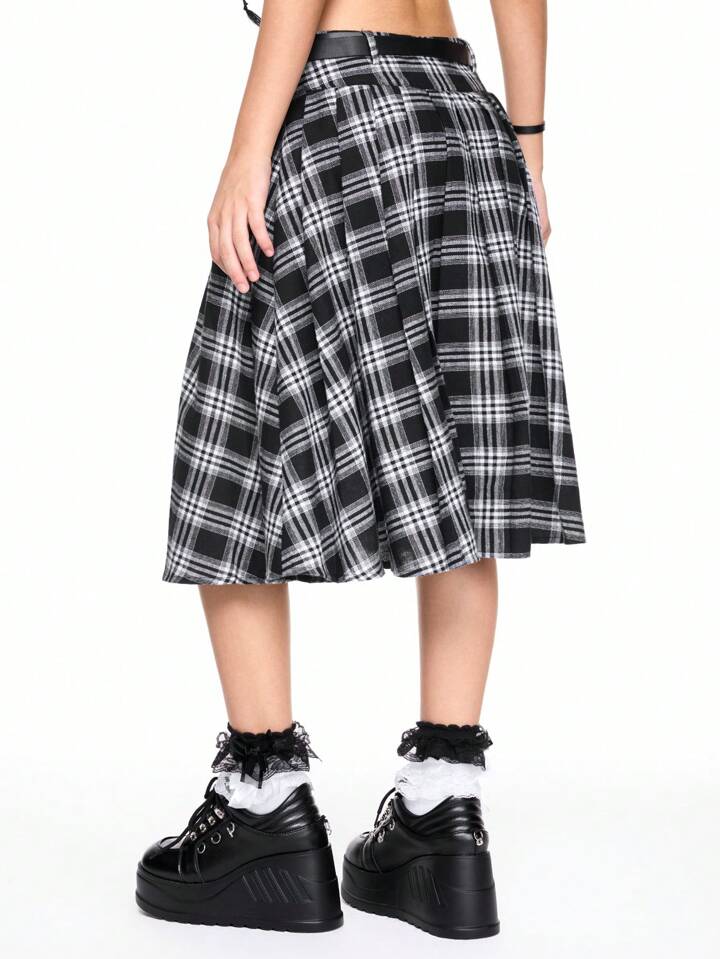 ROMWE Avant Mini-jupe plissée taille papillon rétro sous-culture collège Y2K à carreaux pour femmes