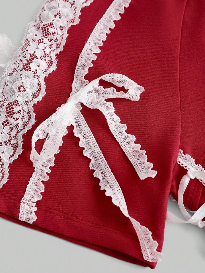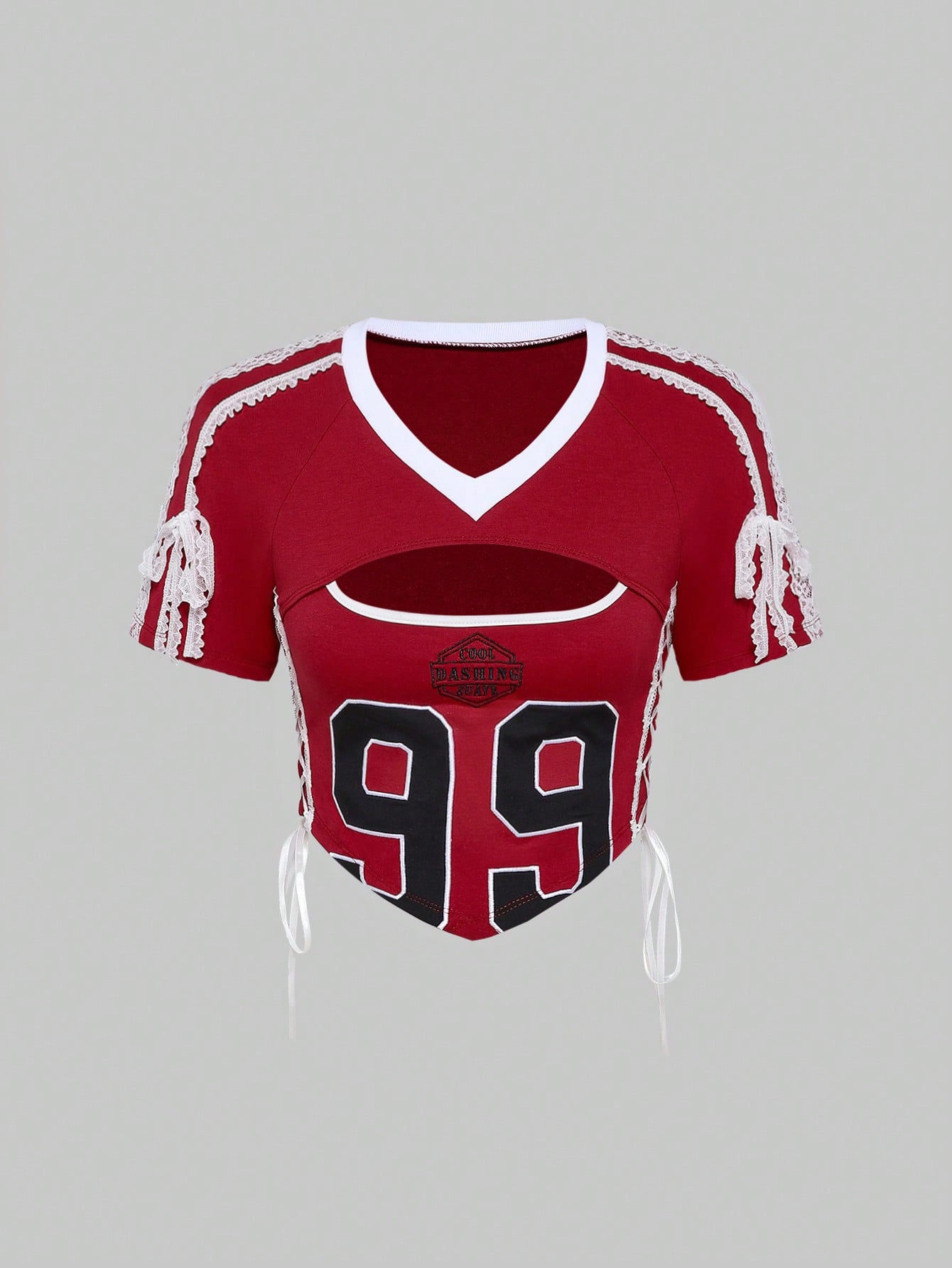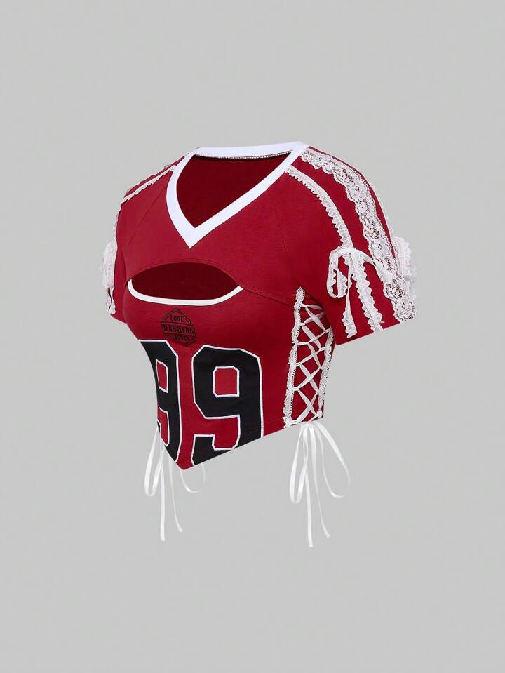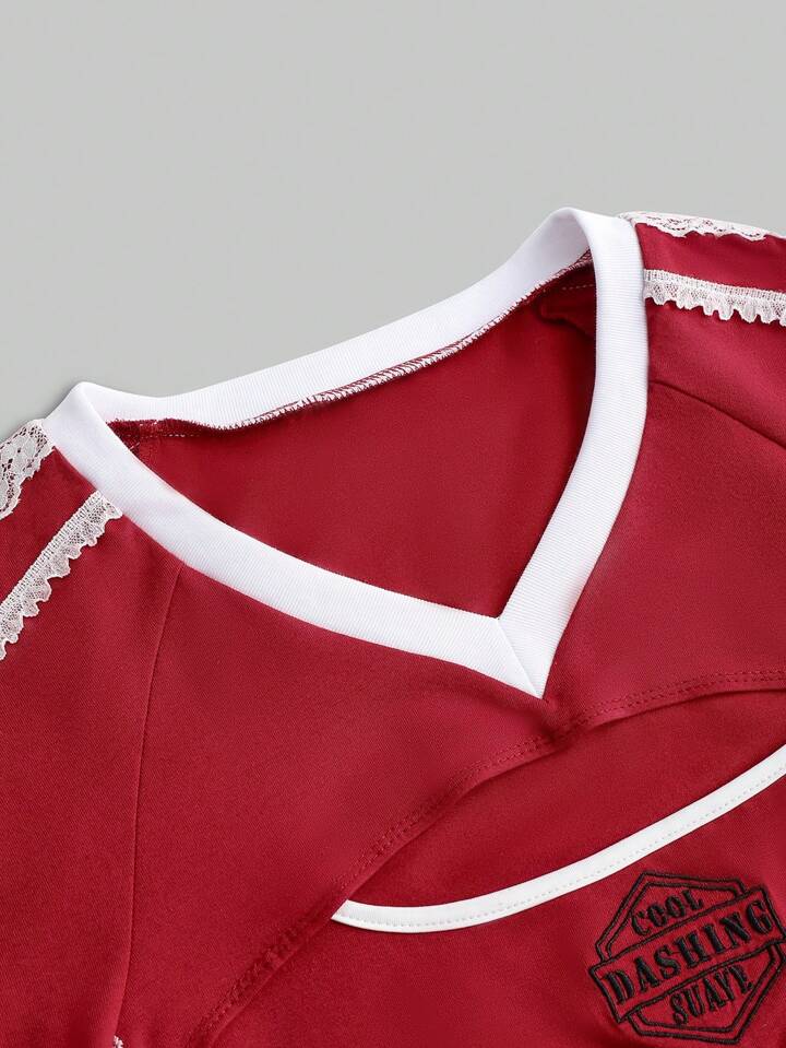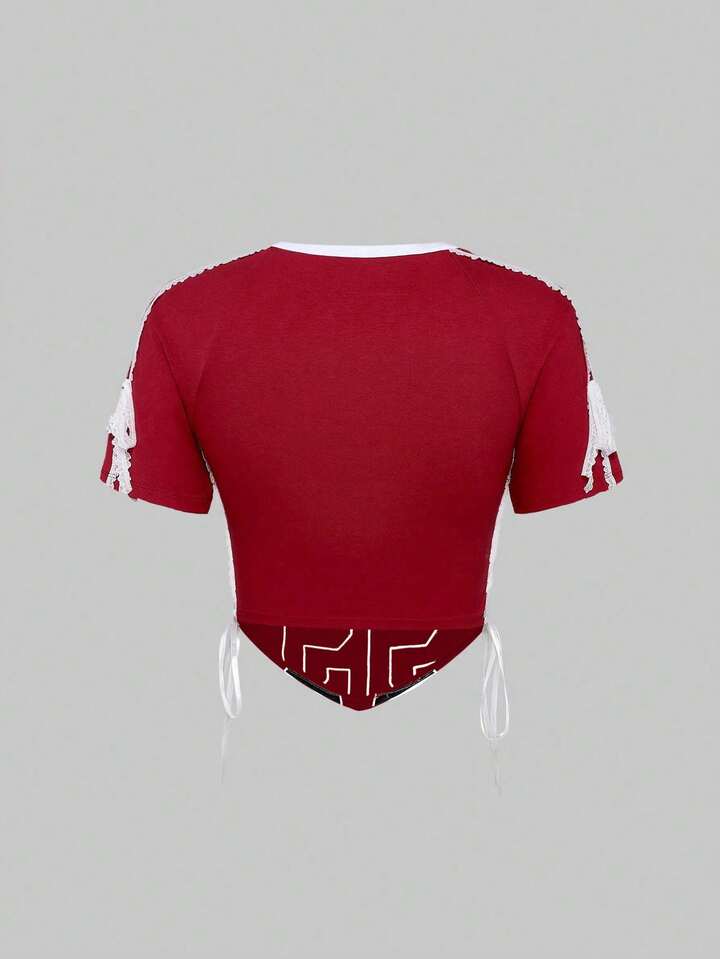 ROMWE Avant T-shirt ajusté en dentelle à rayures séduisantes de yoga et de ballerine pour femmes