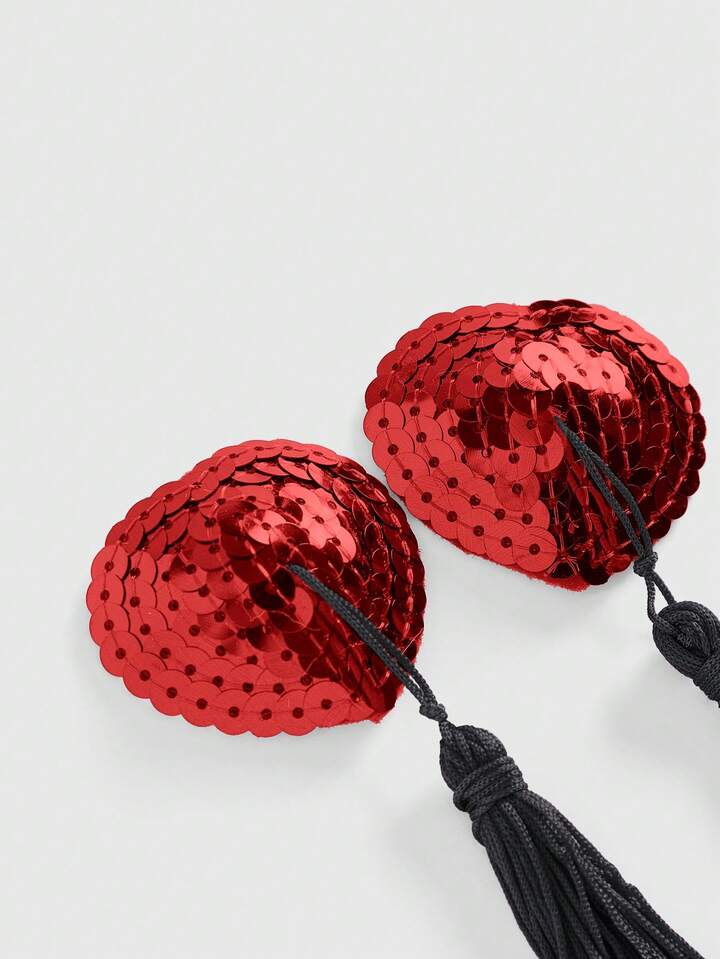 ROMWE Avant Pâtes de seins à paillettes en forme de cœur avec gland, convient pour les fêtes et les danses