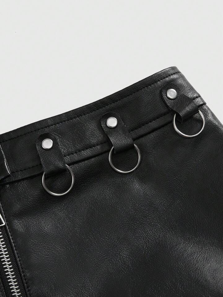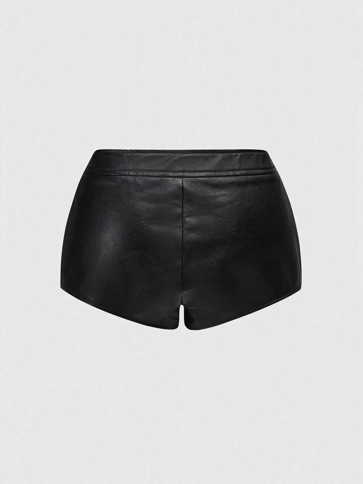 ROMWE Avant Shorts ultra-courts en PU à taille basse, noirs, décorés de rivets et d'anneaux, style sexy punk goth pour femmes