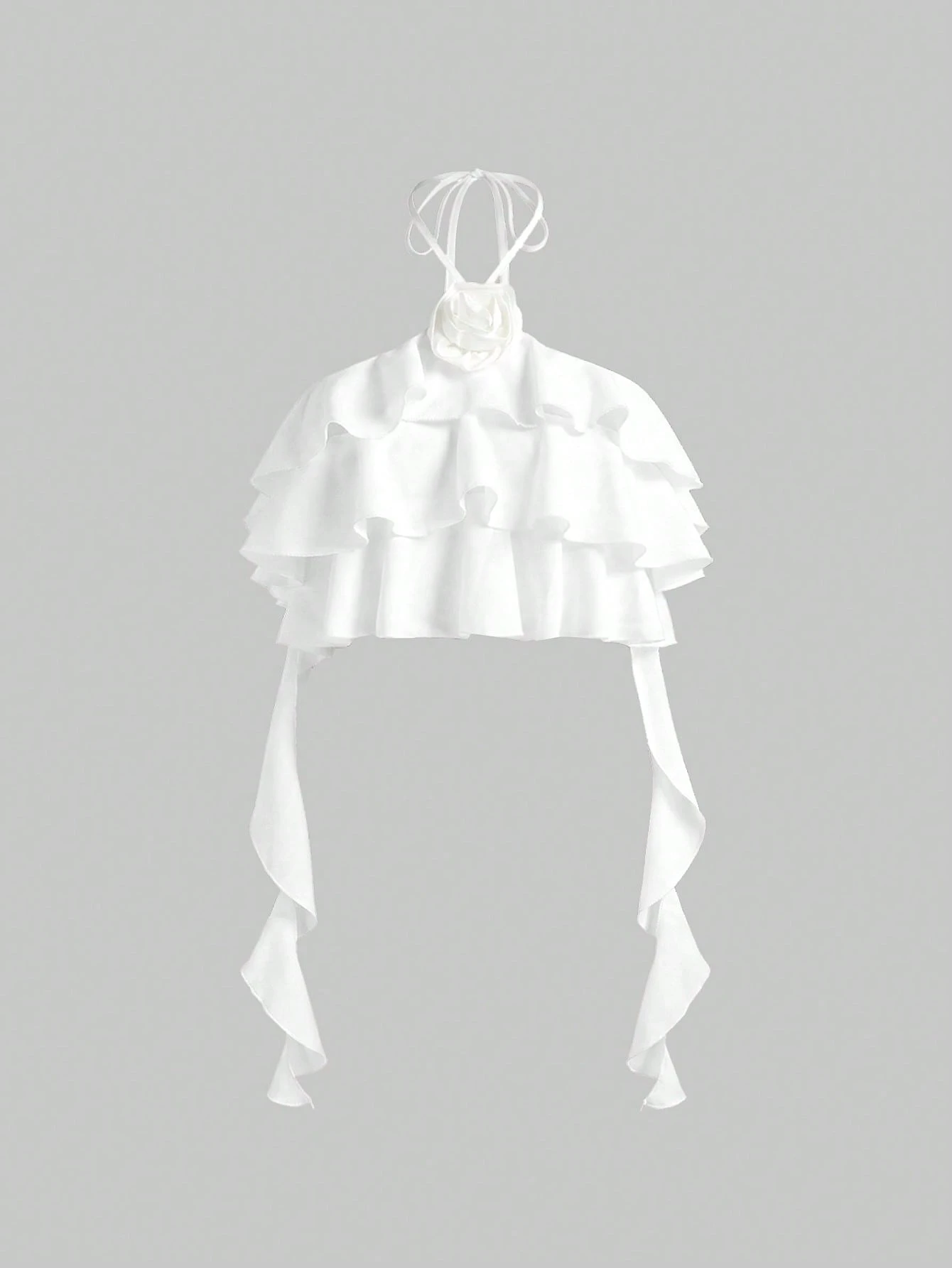 ROMWE Avant Débardeur à volants multicouches à fleurs style vacances pour femmes, dos nu