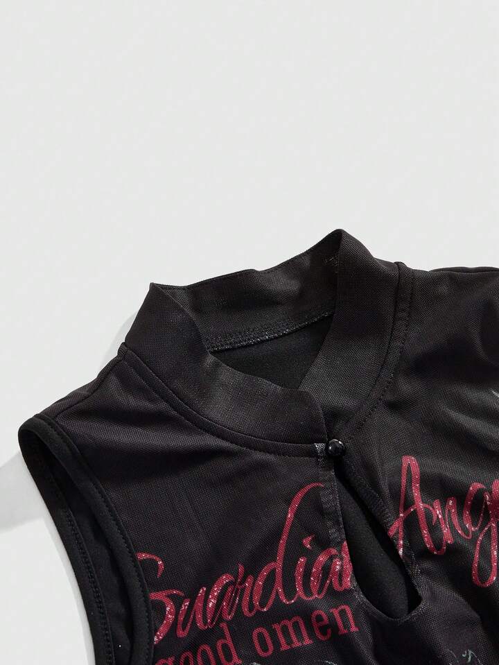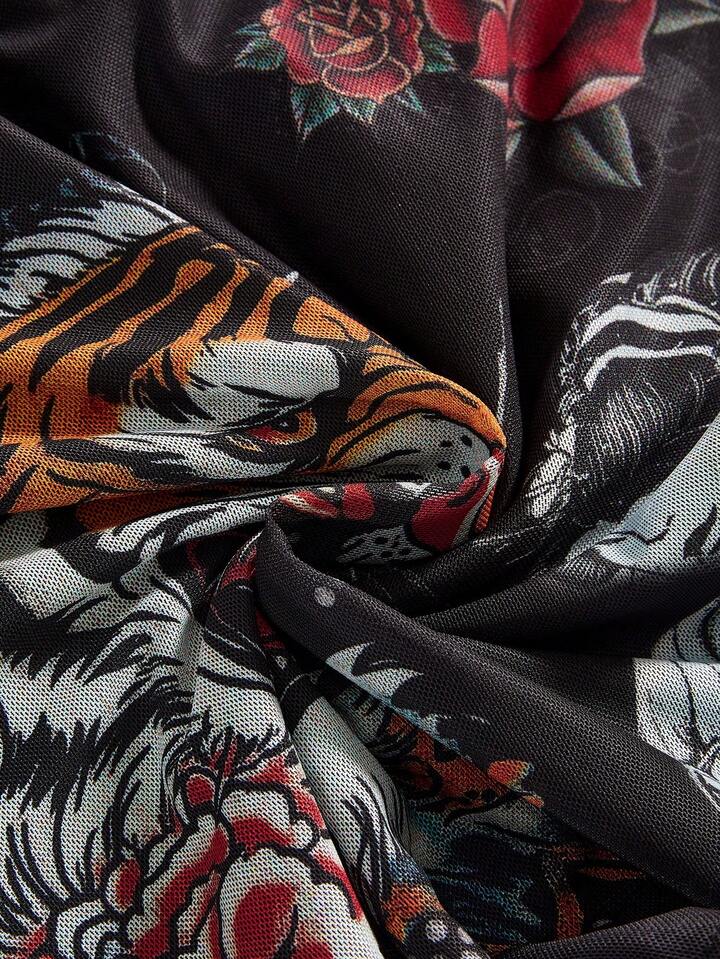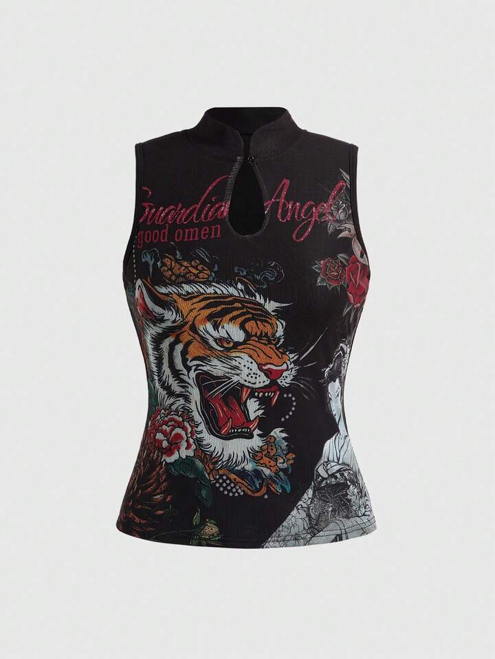 ROMWE Avant Débardeur slim femme imprimé faux tatouage de tigre et de vigne style rétro Y2K, nouveau style chinois