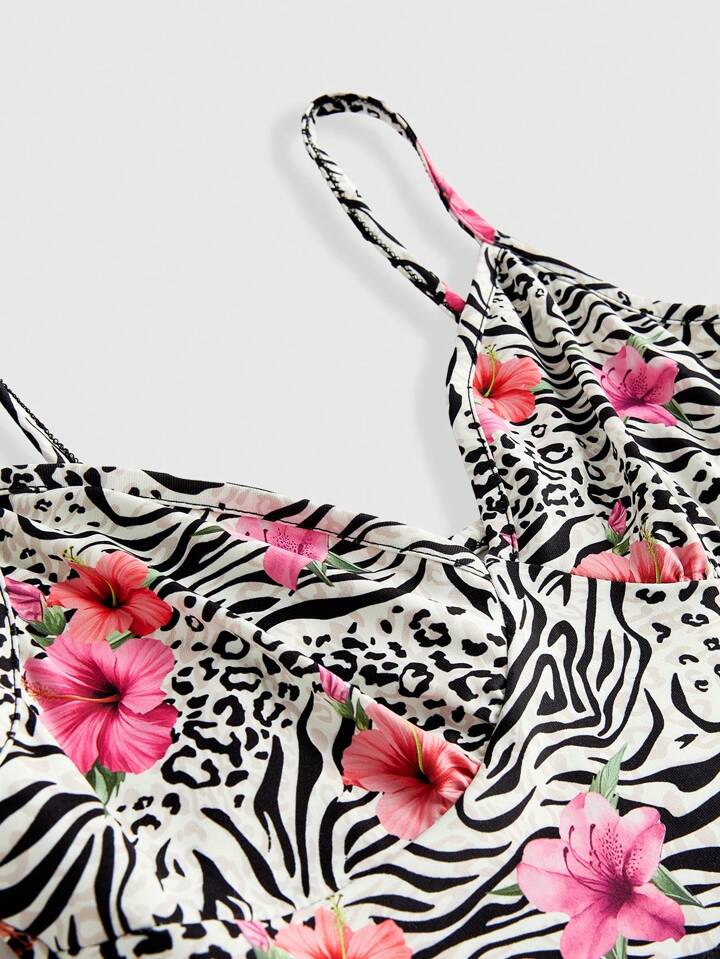 ROMWE Avant Ensemble Pyjama D'été Décontracté Pour Femme, À Fines Bretelles, Motif Floral Zébré, Style Y2K Shibuya Girl