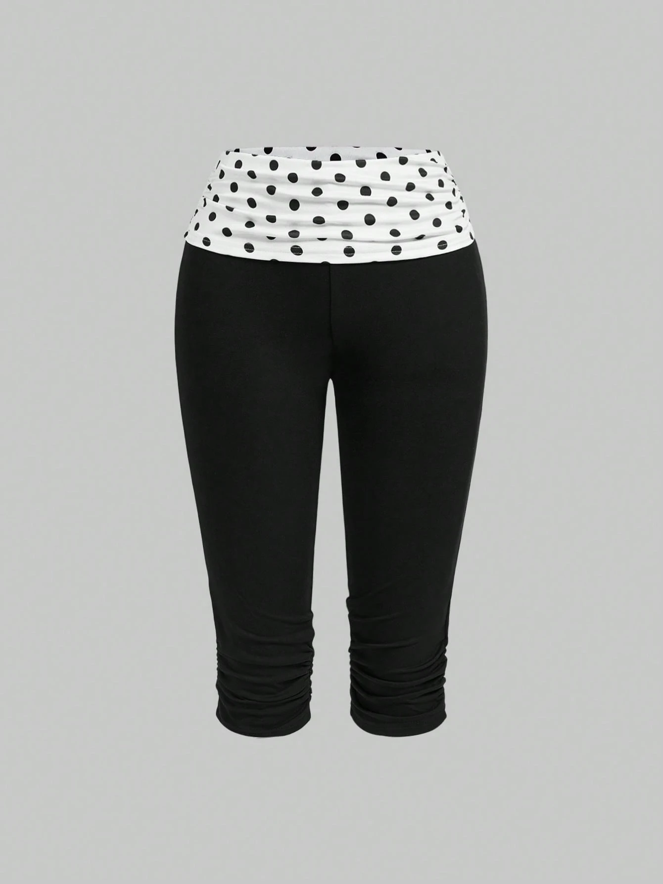 ROMWE Avant Pantalon skinny 3/4 pour femmes au style patchwork à pois vintage, style Y2K Sicile Vacances
