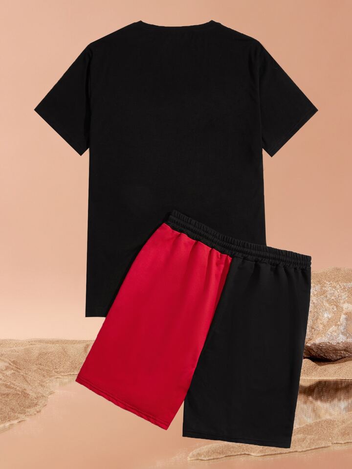 ROMWE X Call of Duty Homme T-shirt à lettres & Short à blocs de couleurs