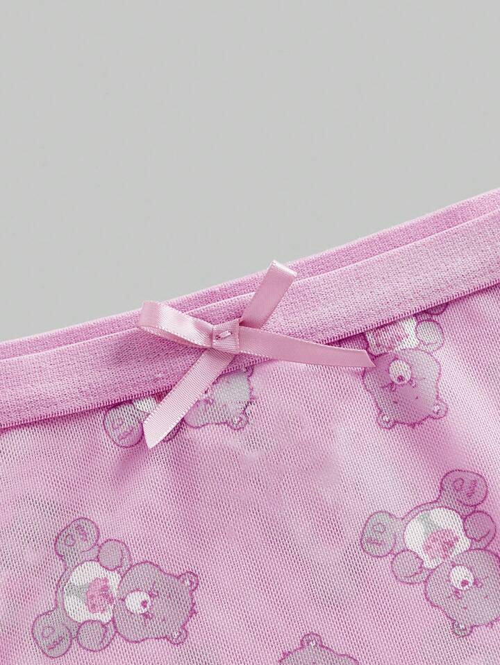 ROMWE X Care Bears 3 pièces/paquet Culottes triangulaires pour femmes avec bordure en dentelle et imprimé ours de dessin animé