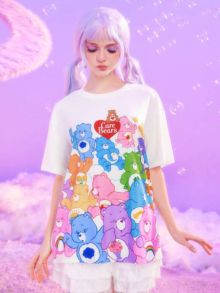 ROMWE X Care Bears T-shirt Décontracté Confortable À Coupe Large Avec Impression D'ours Coloré