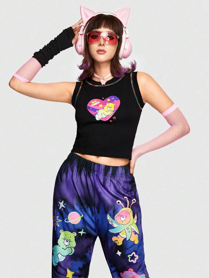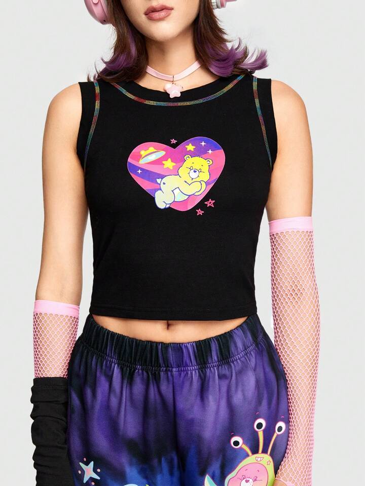 ROMWE X Care Bears Débardeur Slim Fit Imprimé Ours Avec Détails De Couture Contrastante