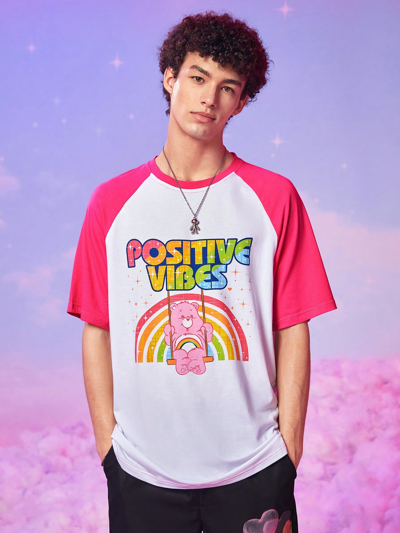 ROMWE X Care Bears Homme T-shirt Lettre Et Dessin Animé Manches Raglan