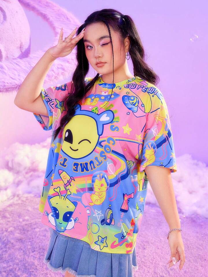 ROMWE X Care Bears T-shirt À Épaules Basses Avec Impression De Dessin Animé Et De Slogan Pour Les Tailles Plus