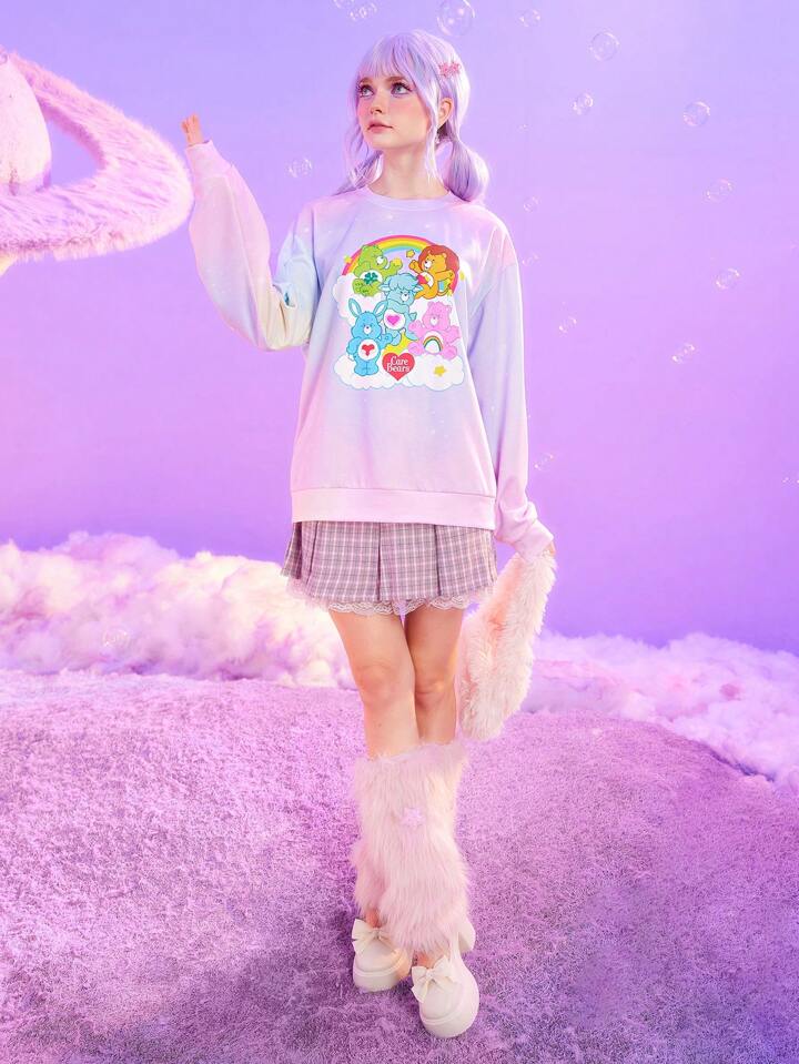 ROMWE X Care Bears Sweat-shirt Mignon Pour Femme Avec Impression D'ours Arc-en-ciel Rêveur, Dégradé Coloré