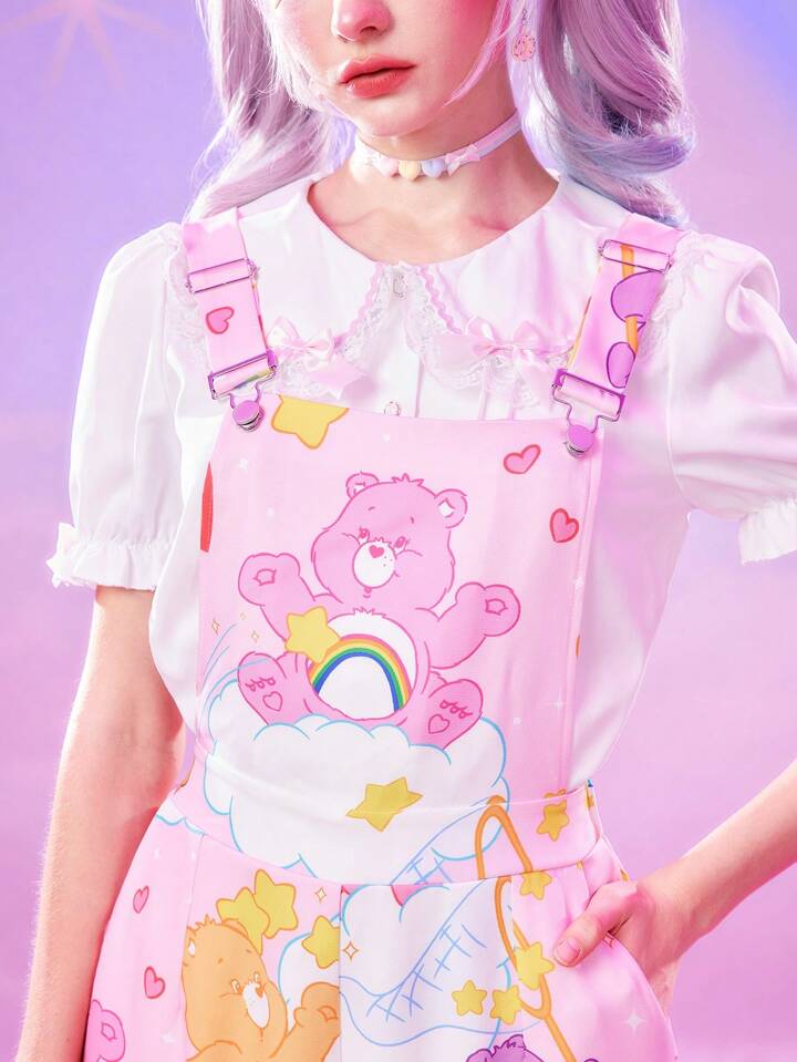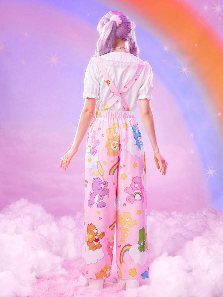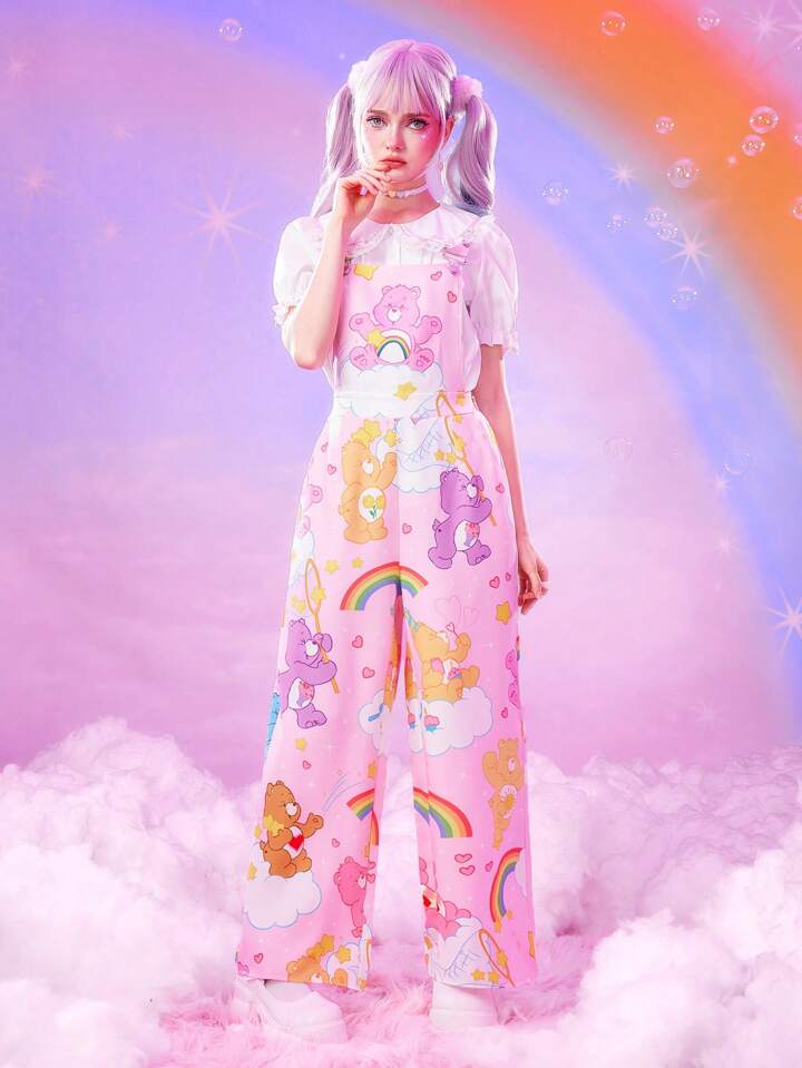 ROMWE X Care Bears Combinaison décontractée et ample pour femmes avec imprimé mignon d'ours et arc-en-ciel, avec bretelles
