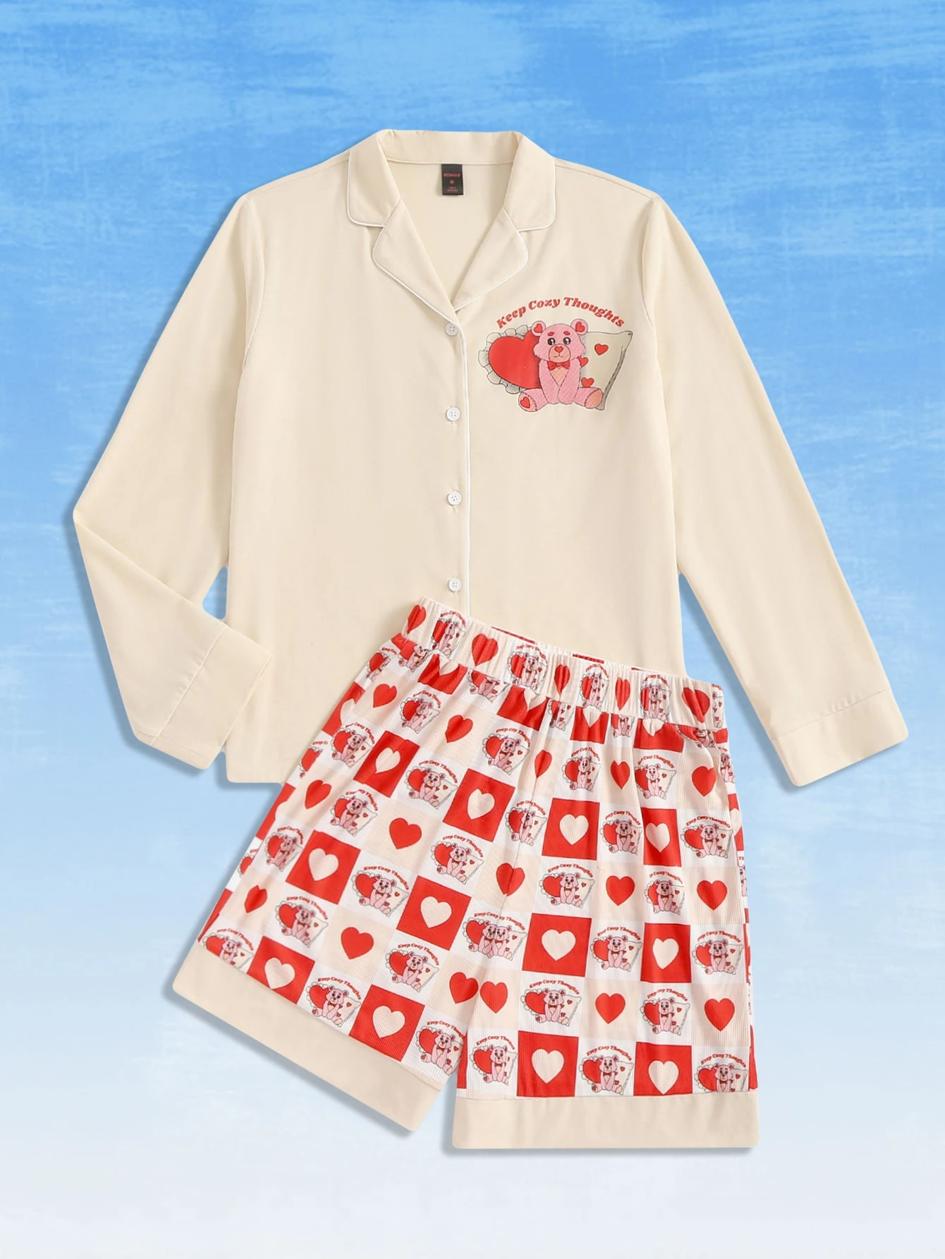 ROMWE X Kyle Schneider Ensemble de pyjama à motif slogan et ours dessin animé