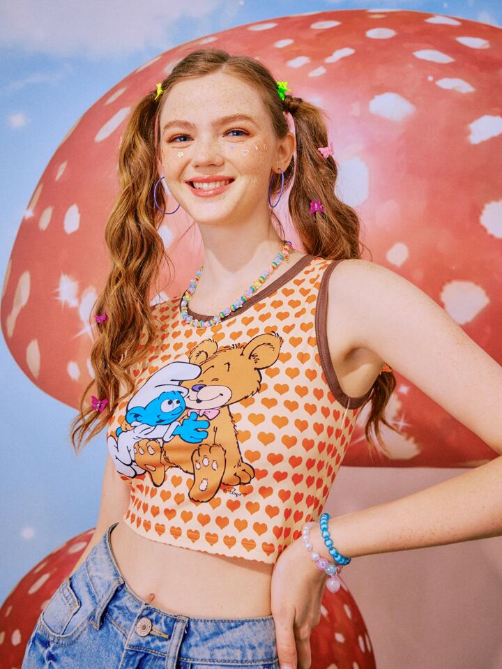 ROMWE X The Smurfs Y2K Revival Top sans manches dessin animé à imprimé cœur