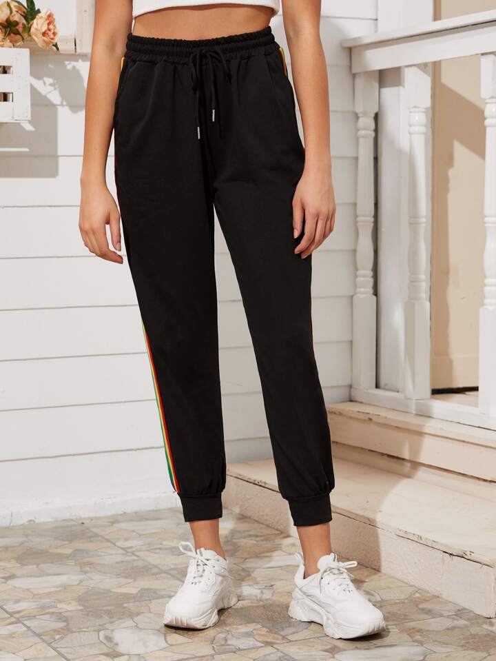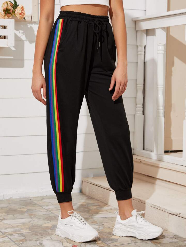Pantalon de survêtement avec rayures arc-en-ciel et cordon